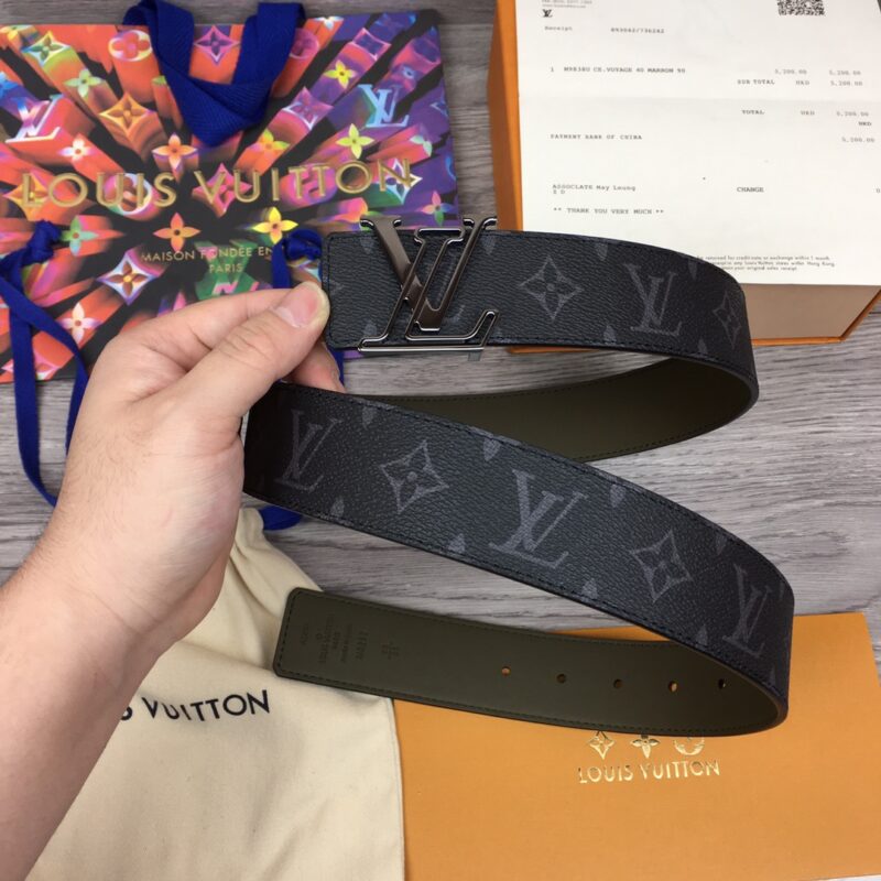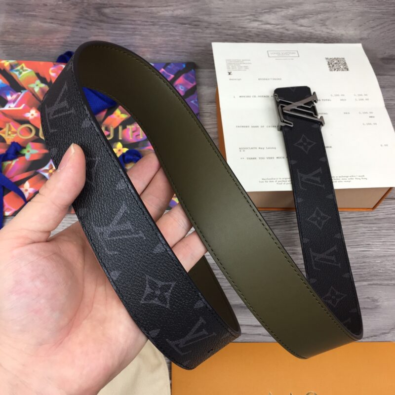 Louis Vuitton original single new belt. Width 40 mm. This belt can be used on both sides, fine workmanship new hollow buckle, the surface is made of special custom fabric, set off the unique calfskin bottom. 35080252