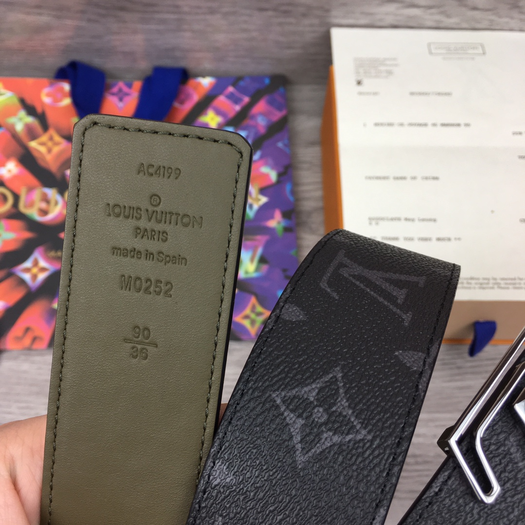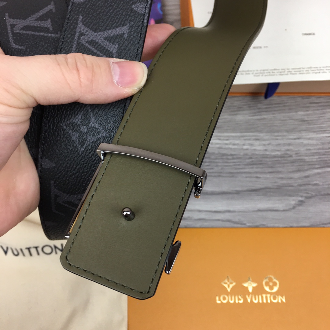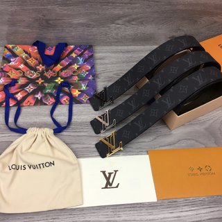 Louis Vuitton original single new belt. Width 40 mm. This belt can be used on both sides, fine workmanship new hollow buckle, the surface is made of special custom fabric, set off the unique calfskin bottom. 35080252