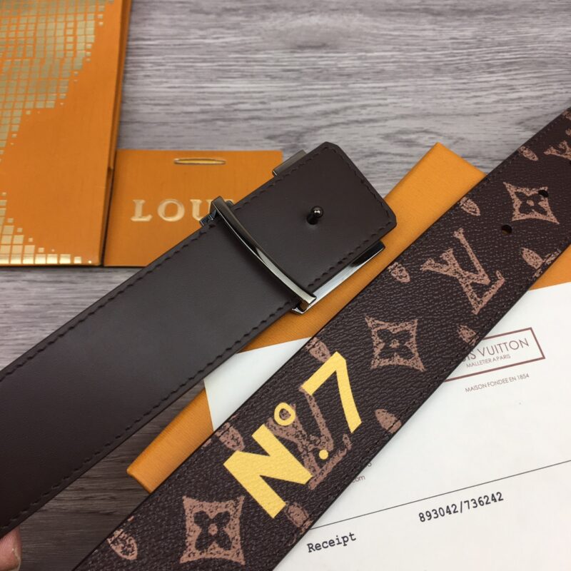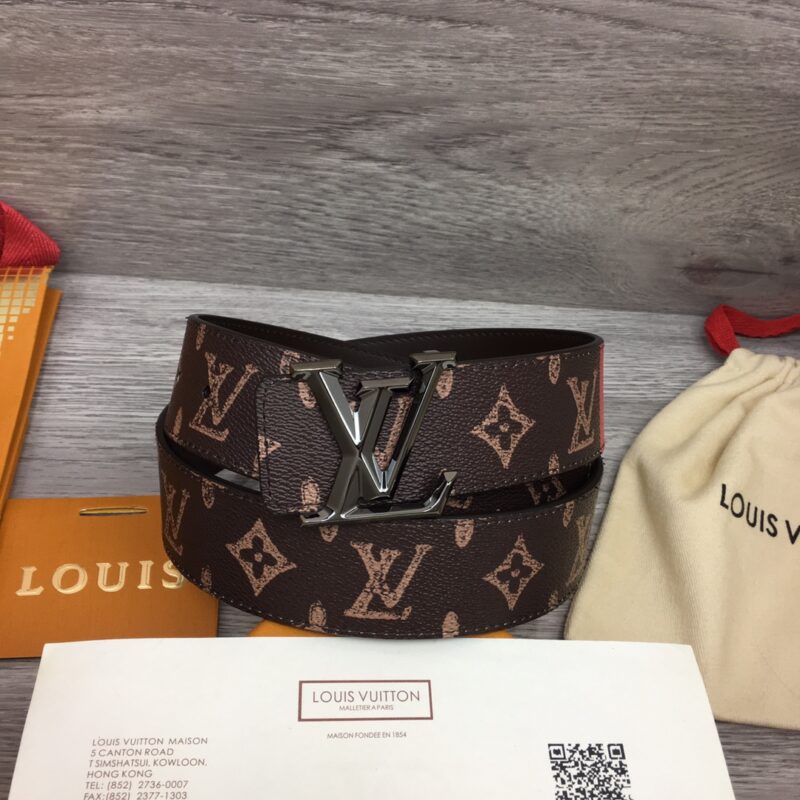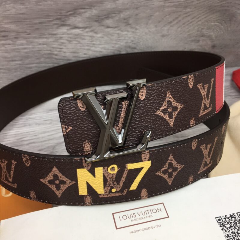 Louis Vuitton new product belt series. Width 4cm. Classic elements, eye-catching digital printing, original coffee-colored cowhide bottom, exquisite workmanship pyramid buckle, double-sided use.