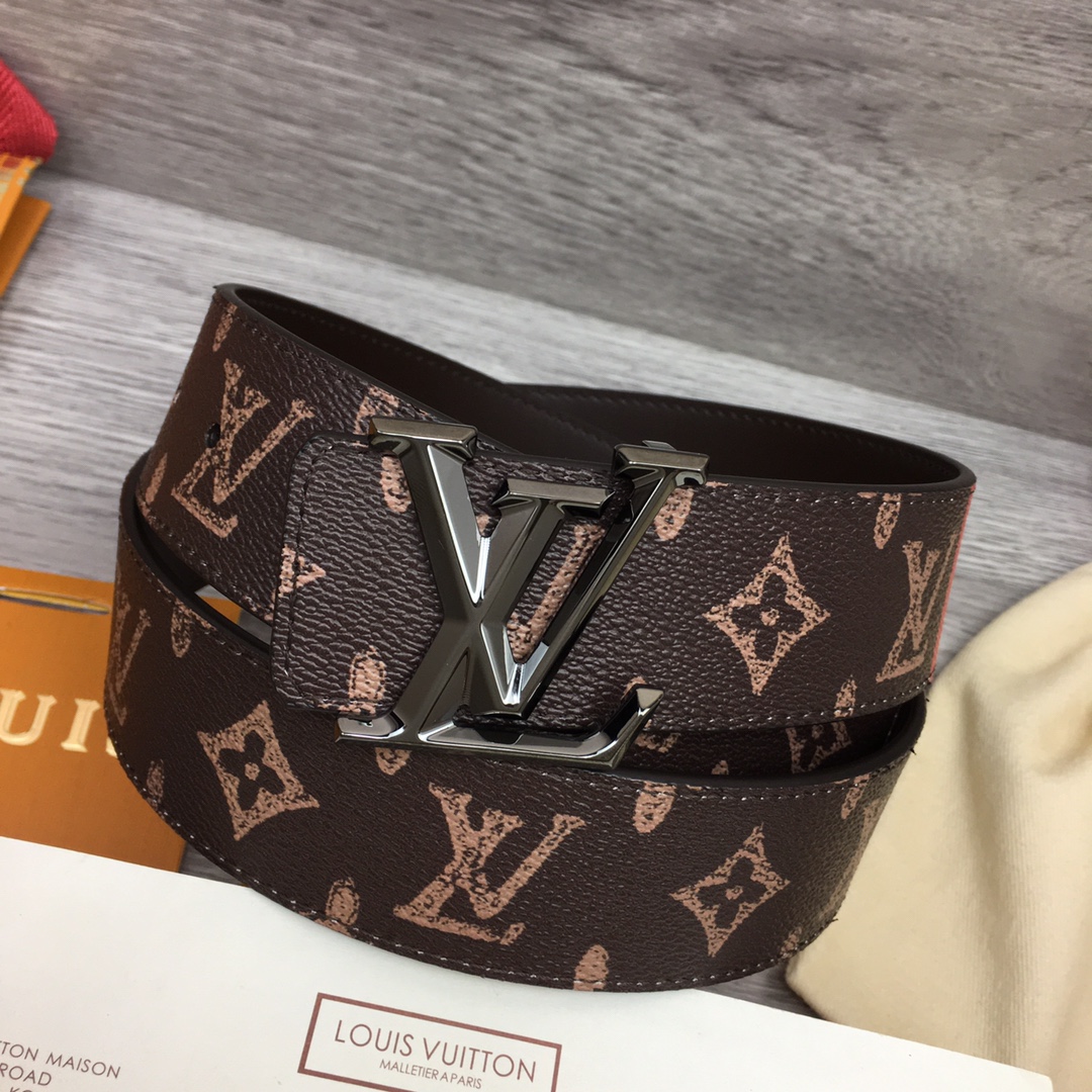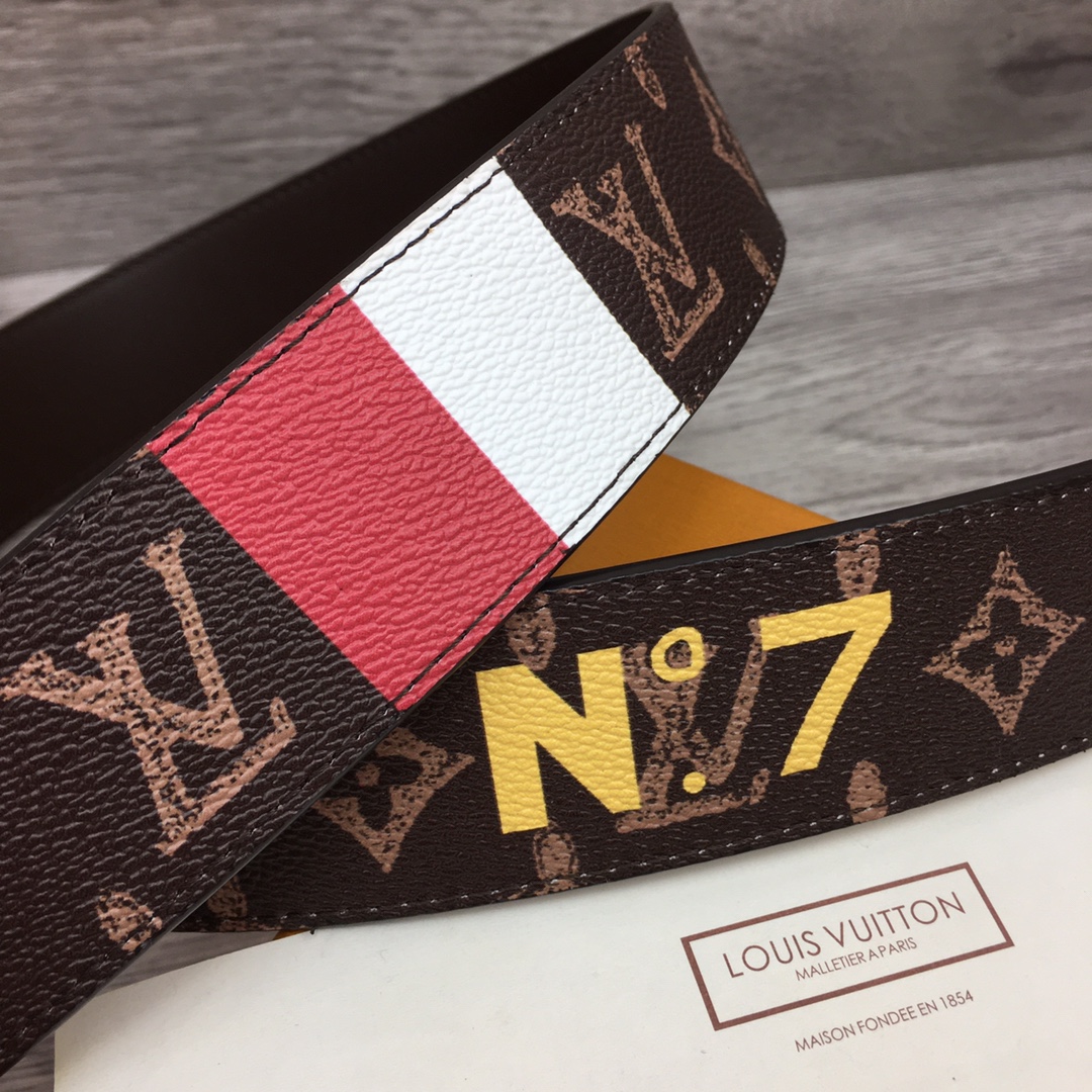 Louis Vuitton new product belt series. Width 4cm. Classic elements, eye-catching digital printing, original coffee-colored cowhide bottom, exquisite workmanship pyramid buckle, double-sided use.