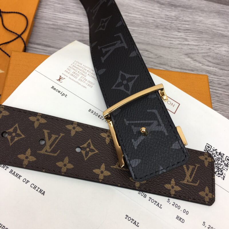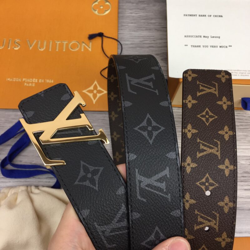 Louis Vuitton men’s belt. Width 40mm. Using double-sided contrasting color format to deduce the classic canvas pattern, with a new hollow color letter buckle