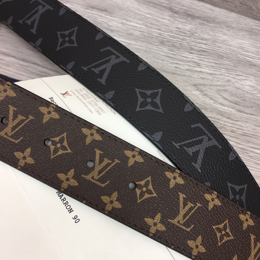 Louis Vuitton men’s belt. Width 40mm. Using double-sided contrasting color format to deduce the classic canvas pattern, with a new hollow color letter buckle