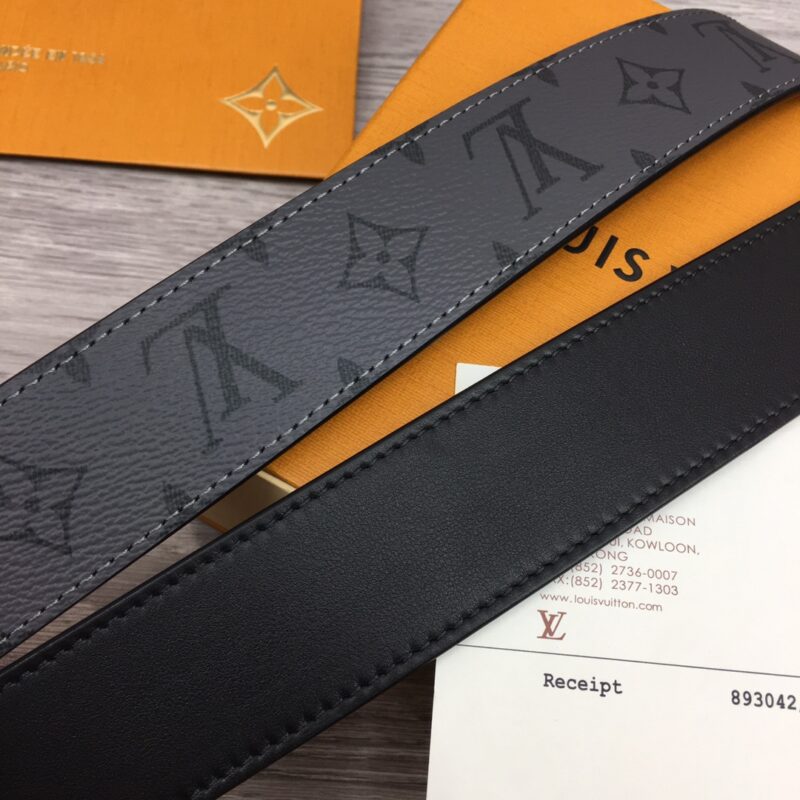 Louis Vuitton men’s original single belt. Width 4cm. The surface is made of imported Italian calfskin with a new checkered pattern. The bottom is plain black calfskin. Double-sided use. Classic letter buckles are hand-polished with fine craftsmanship. Vacuum furnace plating effect. 38080314