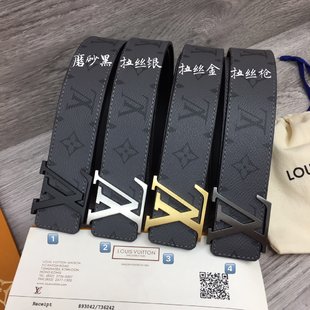 Louis Vuitton men’s original single belt. Width 4cm. The surface is made of imported Italian calfskin with a new checkered pattern. The bottom is plain black calfskin. Double-sided use. Classic letter buckles are hand-polished with fine craftsmanship. Vacuum furnace plating effect. 38080314
