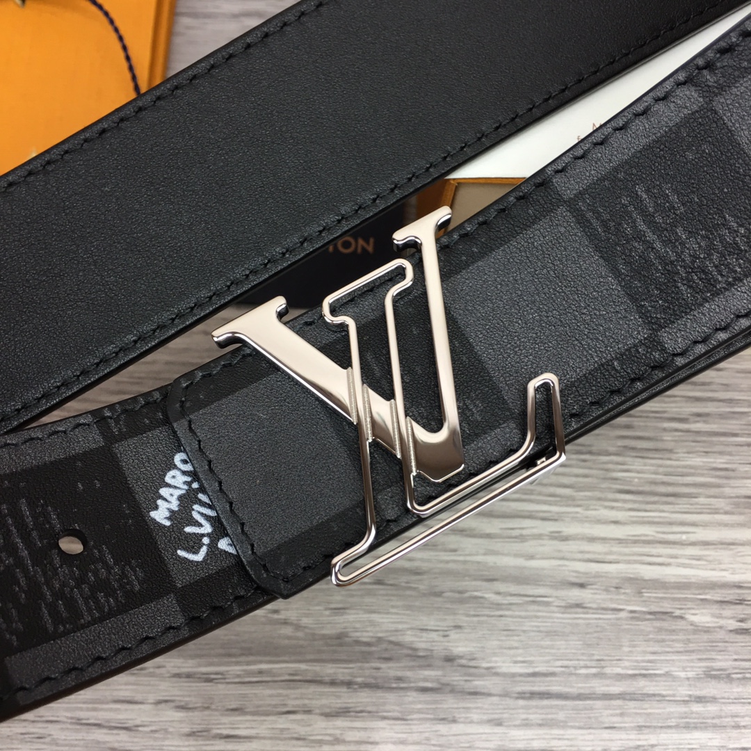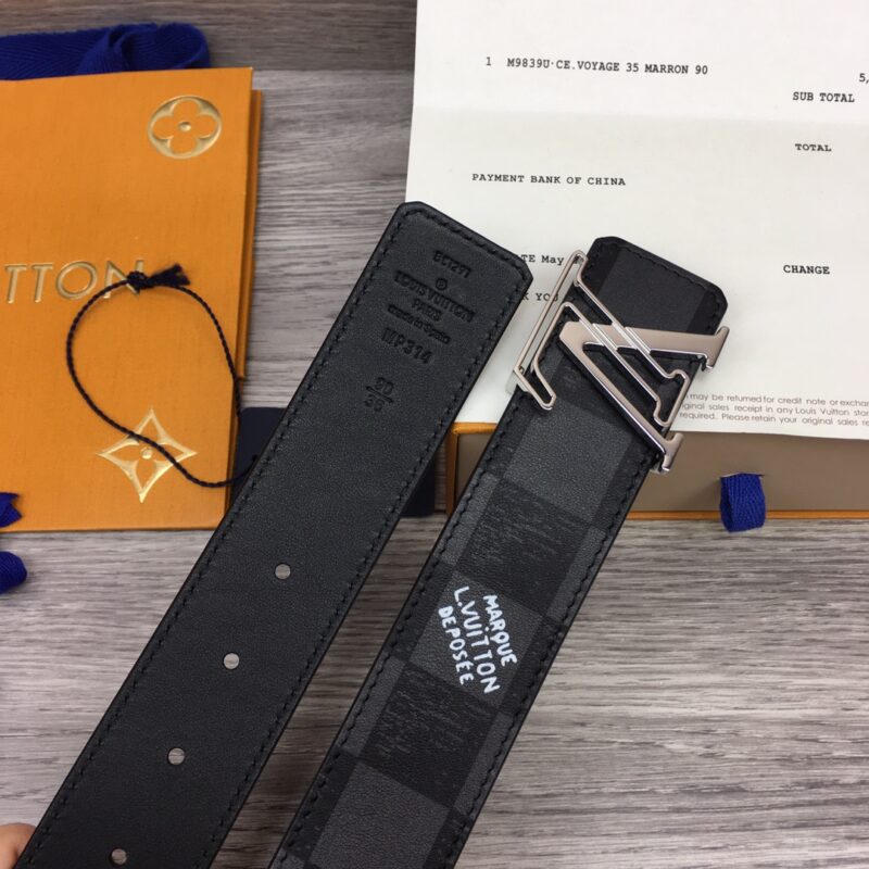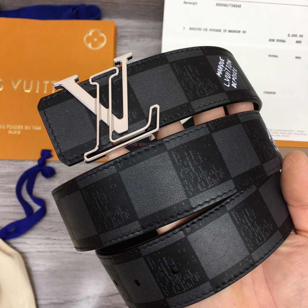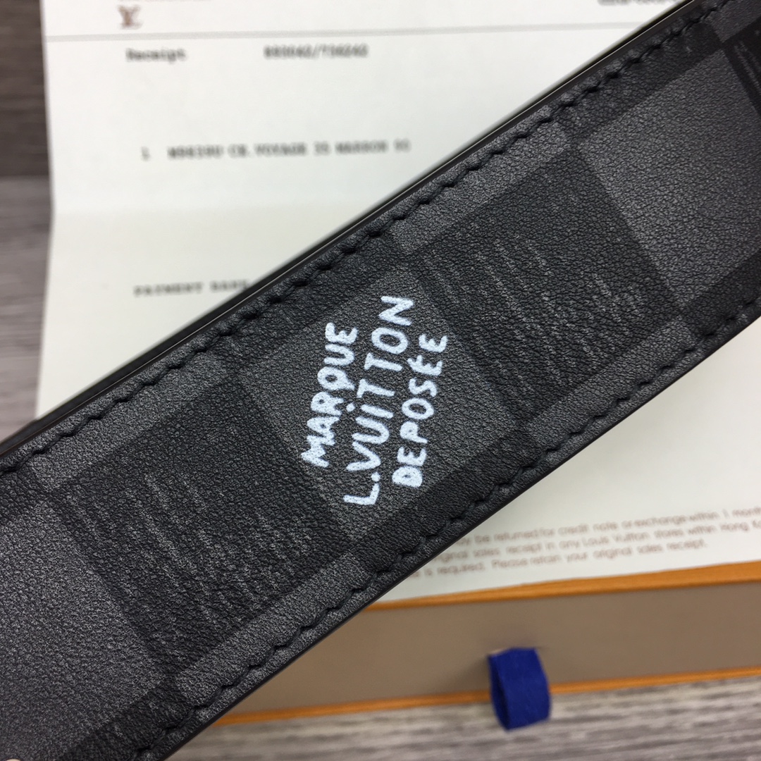 Brand new upgrade of Louis Vuitton men’s original single belt. Width 4cm. The surface is made of imported Italian calfskin with a new checkered pattern. The bottom is plain black calfskin. Double-sided use. Classic letter buckles are hand-polished with fine craftsmanship. Vacuum furnace plating effect. 35080314