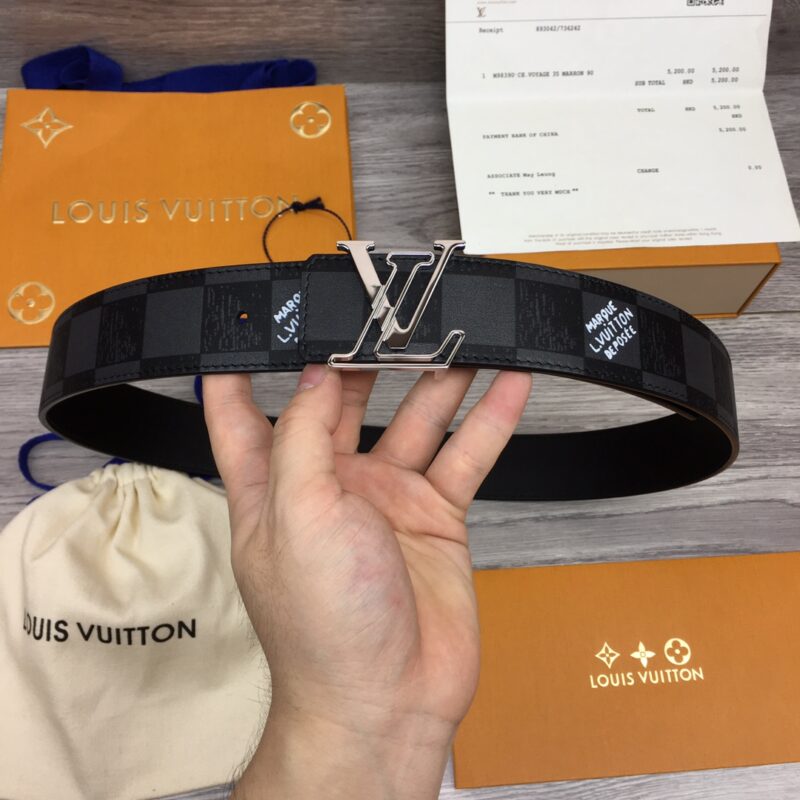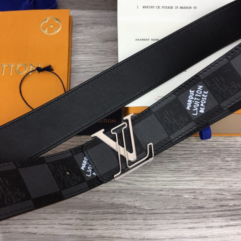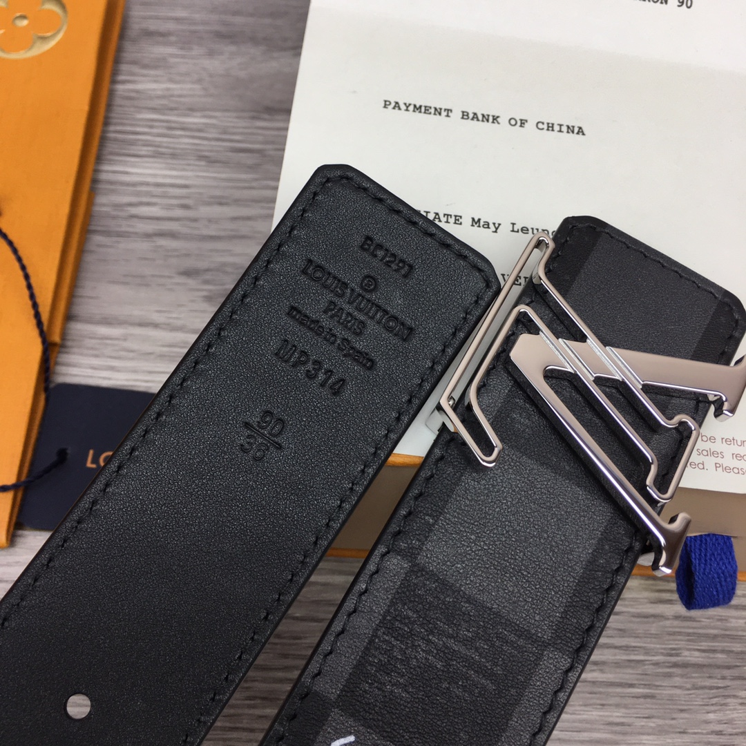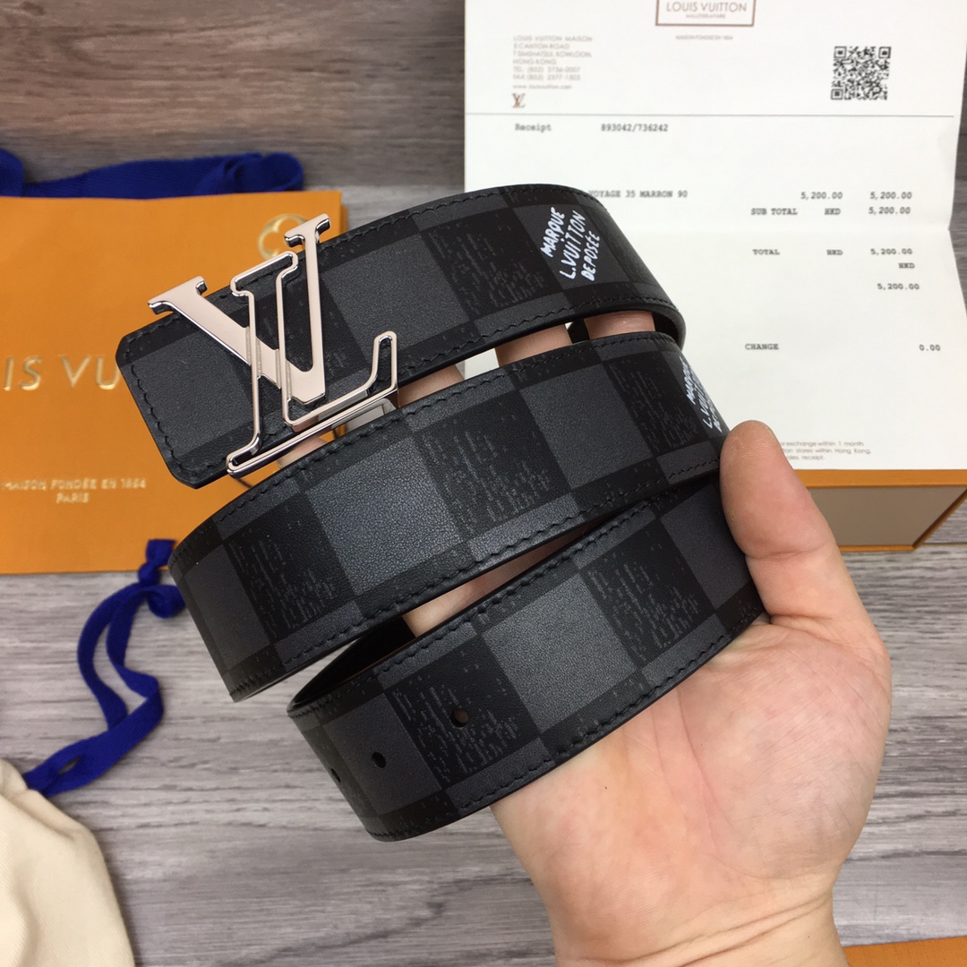 Brand new upgrade of Louis Vuitton men’s original single belt. Width 4cm. The surface is made of imported Italian calfskin with a new checkered pattern. The bottom is plain black calfskin. Double-sided use. Classic letter buckles are hand-polished with fine craftsmanship. Vacuum furnace plating effect. 35080314