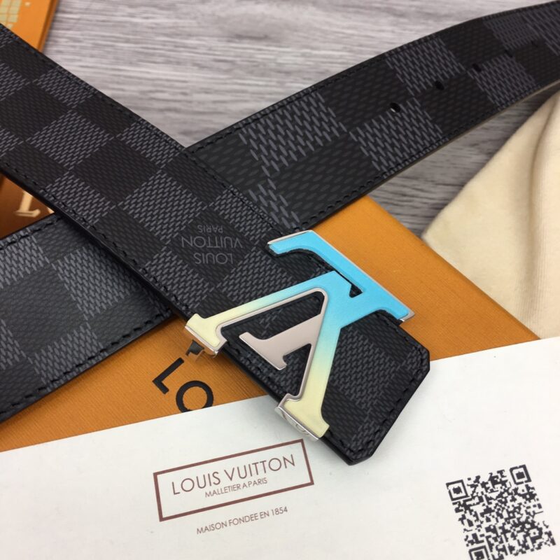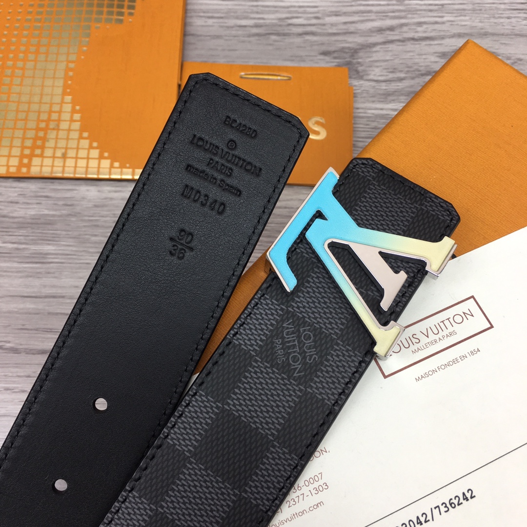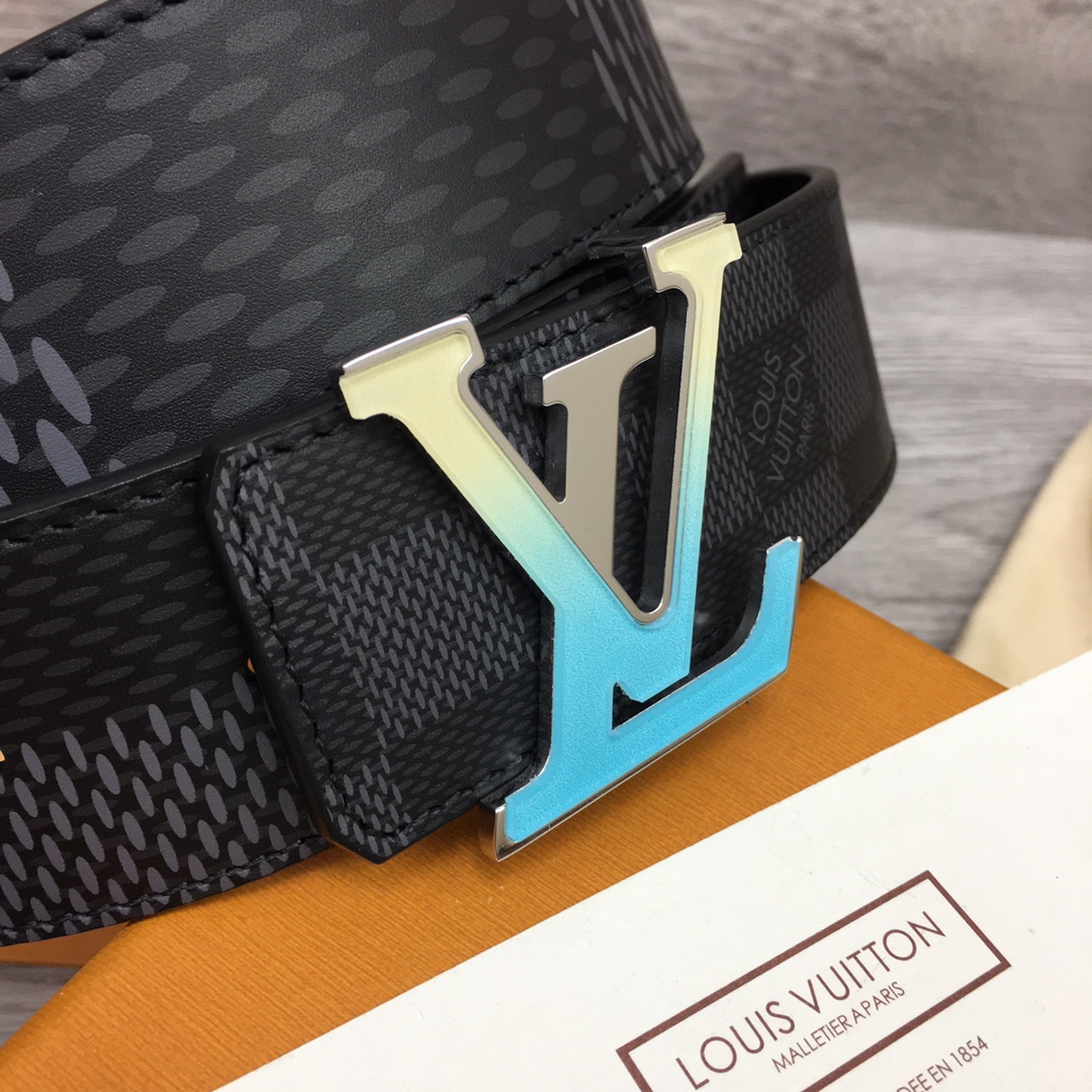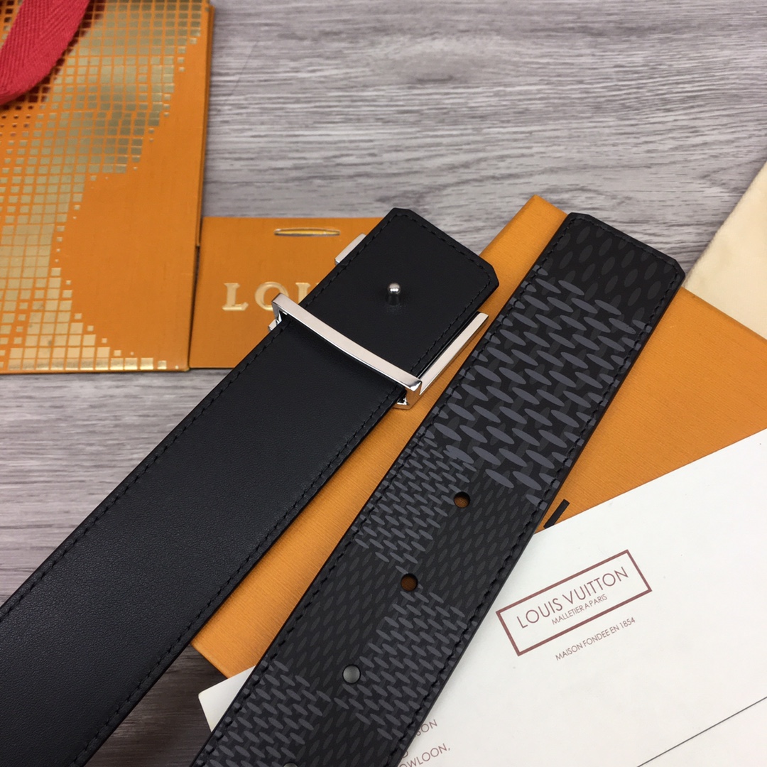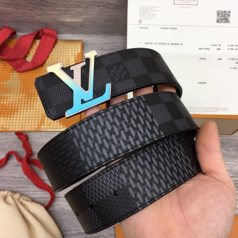 [Men’s model] Louis Vuitton’s new leather belt. Width 40mm, double-sided imported original leather, set off gradient visual texture, color tone buckle, versatile and changeable, double-sided, good gift, super good texture. 38080124