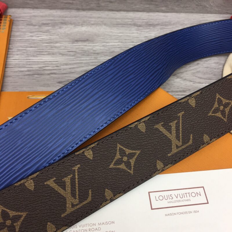 Louis Vuitton’s men’s new style top belt. Width 40mm. Pure handmade two-tone canvas splicing. Original calfskin bottom. Double-sided available, classic letter buckle, top craftsmanship. 3508109