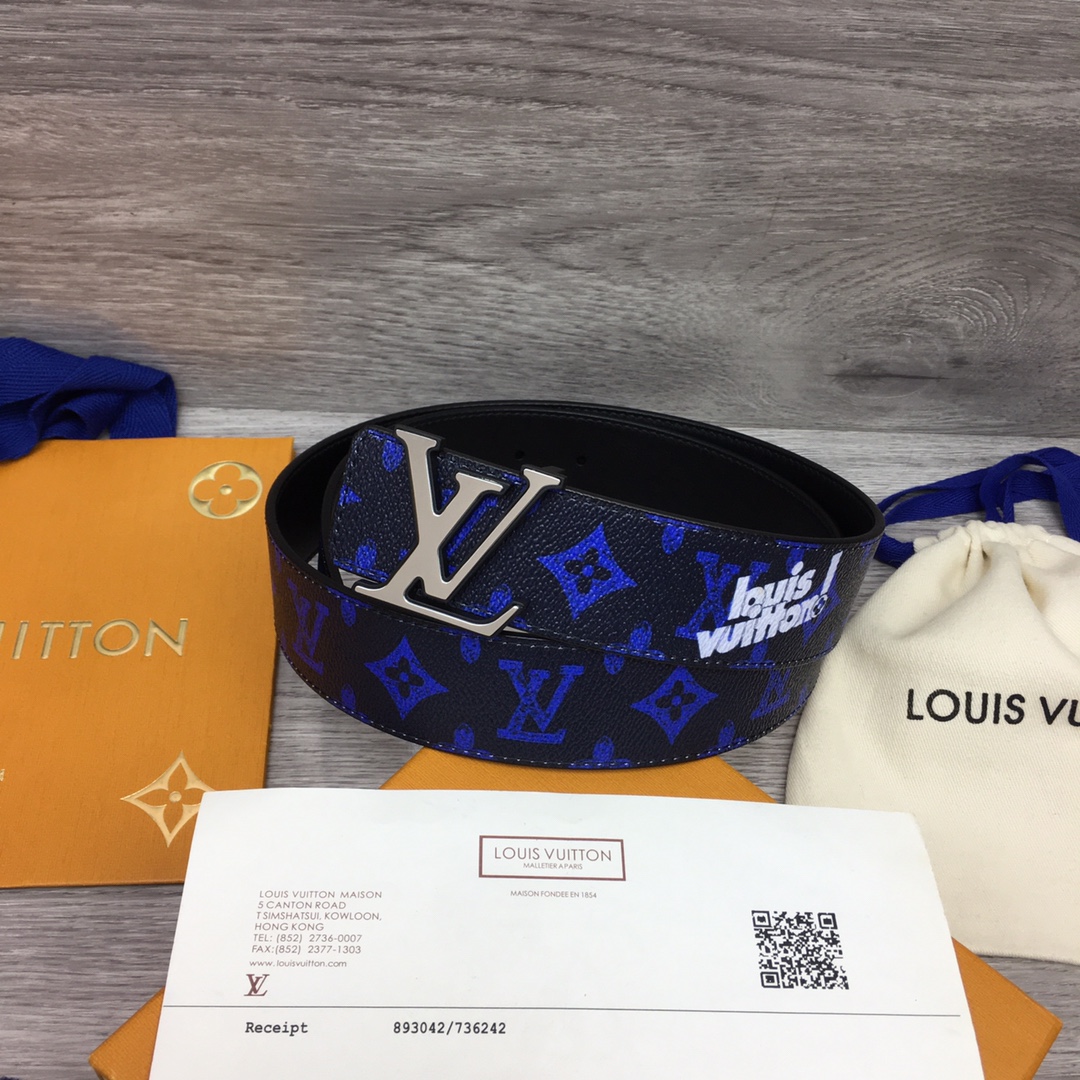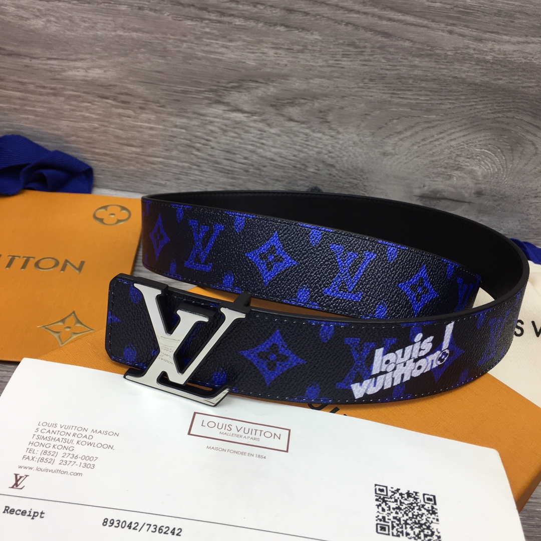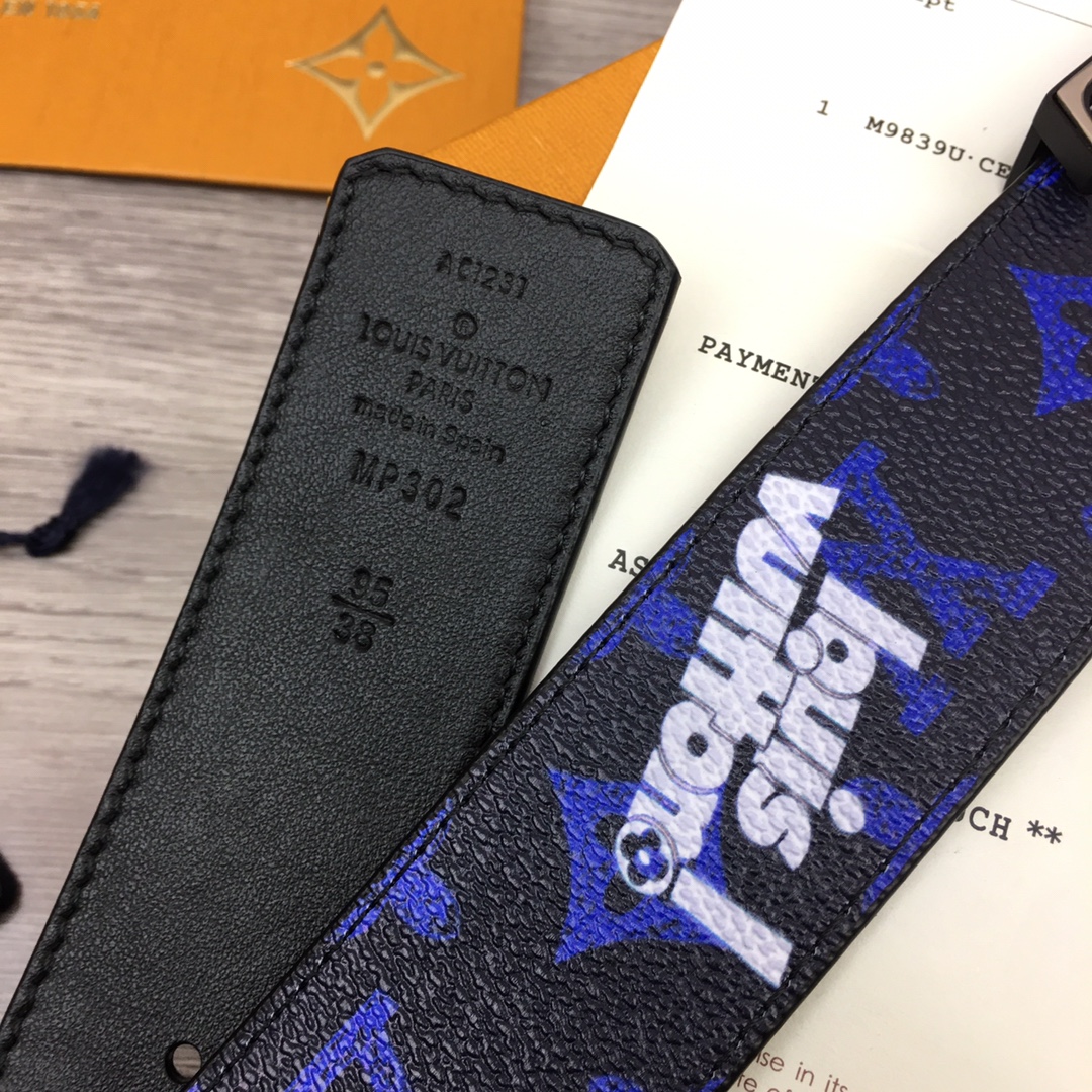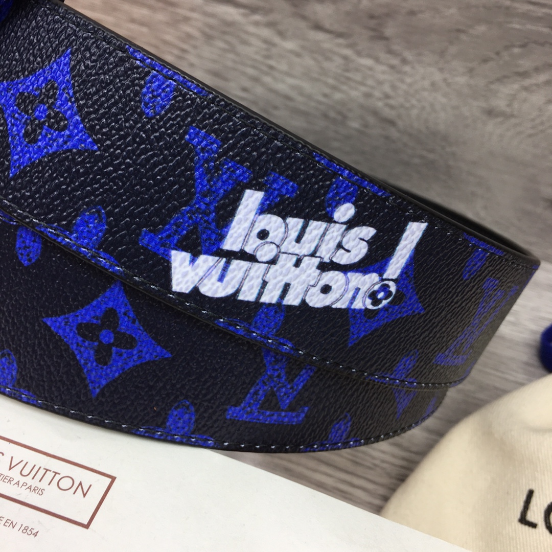 Louis Vuitton new men’s belt series. Width 4cm. Brand-specific custom-made canvas fabric. Enlarged letter logo. Small leather bottom. Classic palladium-plated letter buckle. Double-sided use. 35088302