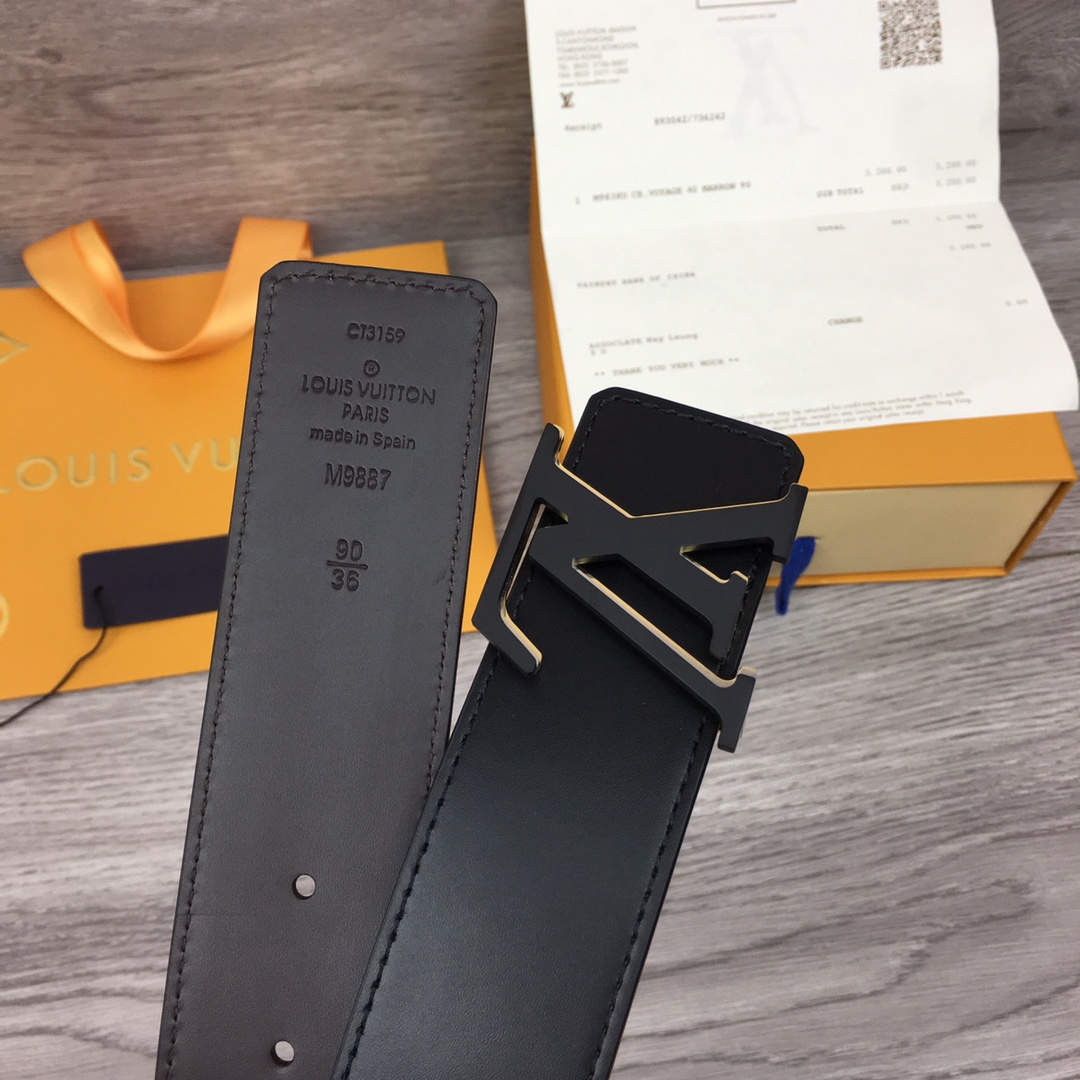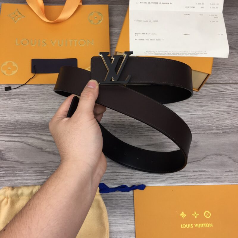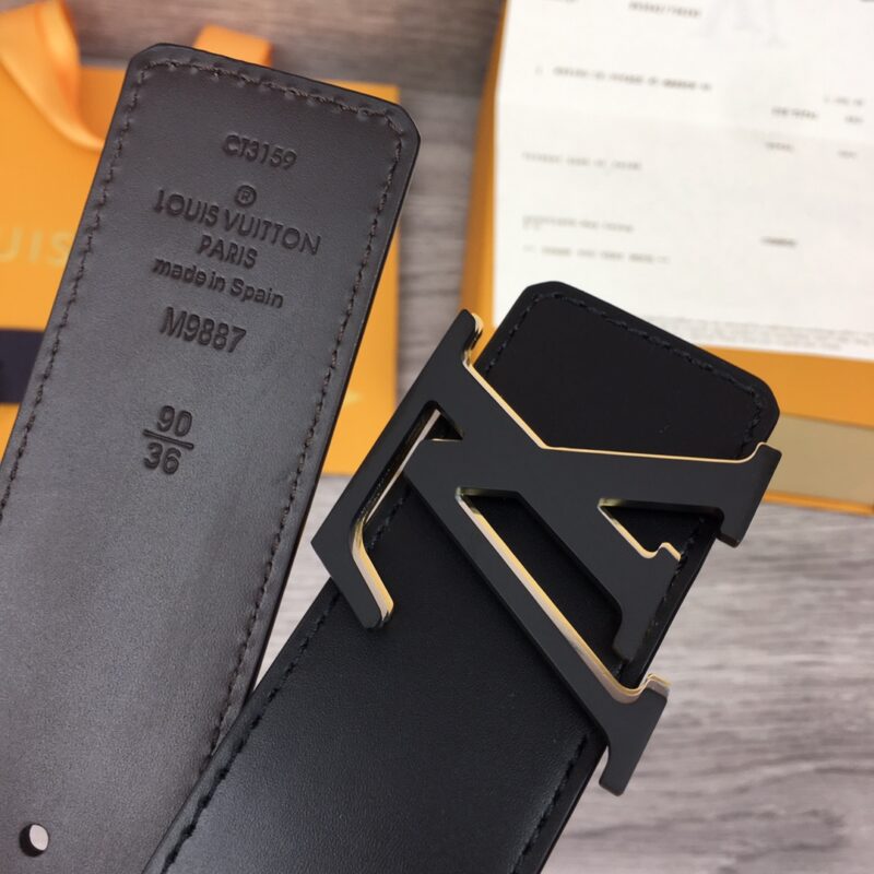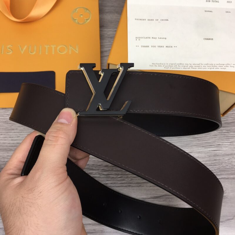 Louis Vuitton latest top original single belt. Width 40mm. Brand new three-overlapping color letter buckle. The belt is made of calfskin on both sides, there are black/smoke-black/dark coffee two-tone options, reversible.