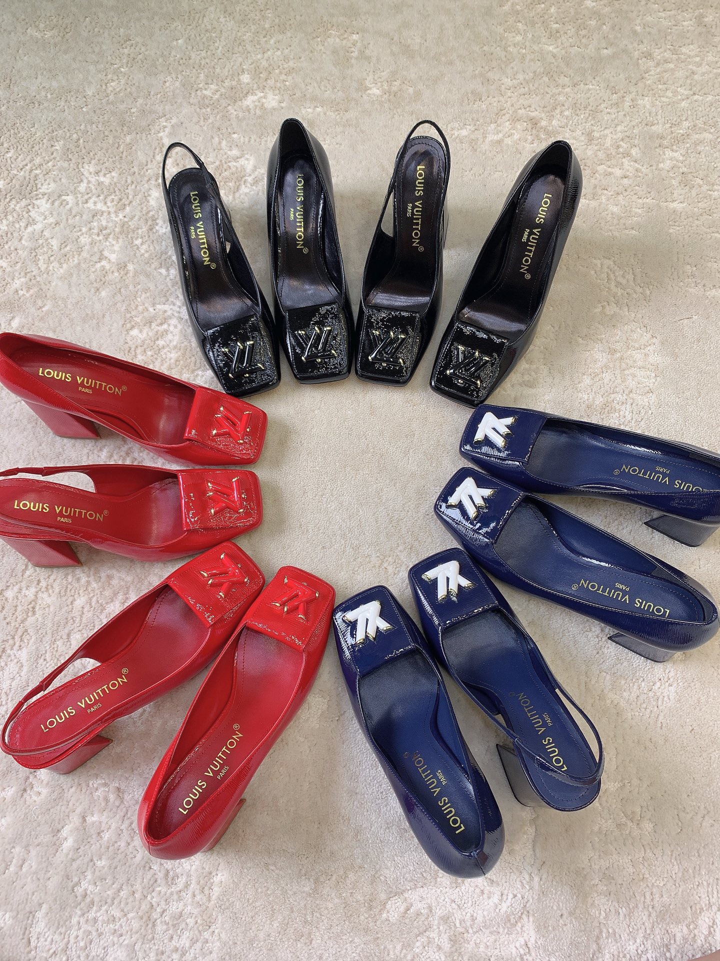 The LOGO logo on the upper is derived from the iconic lock of the handbag. Secure heel with V-shaped silhouette.