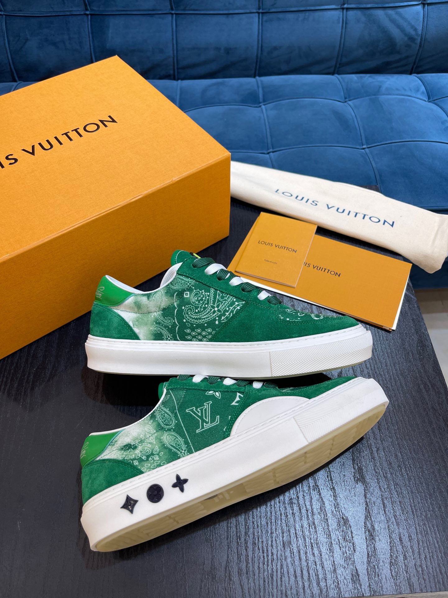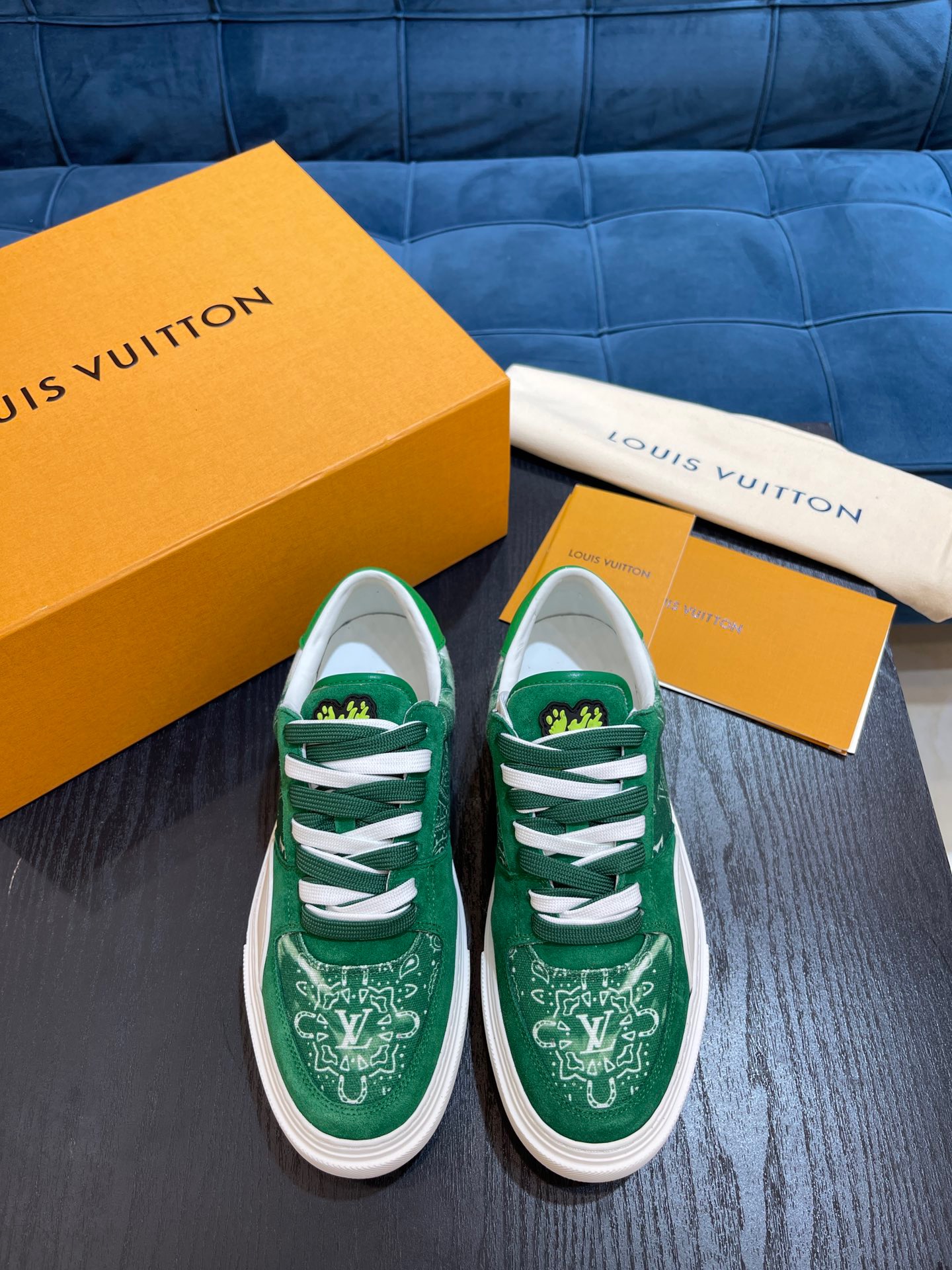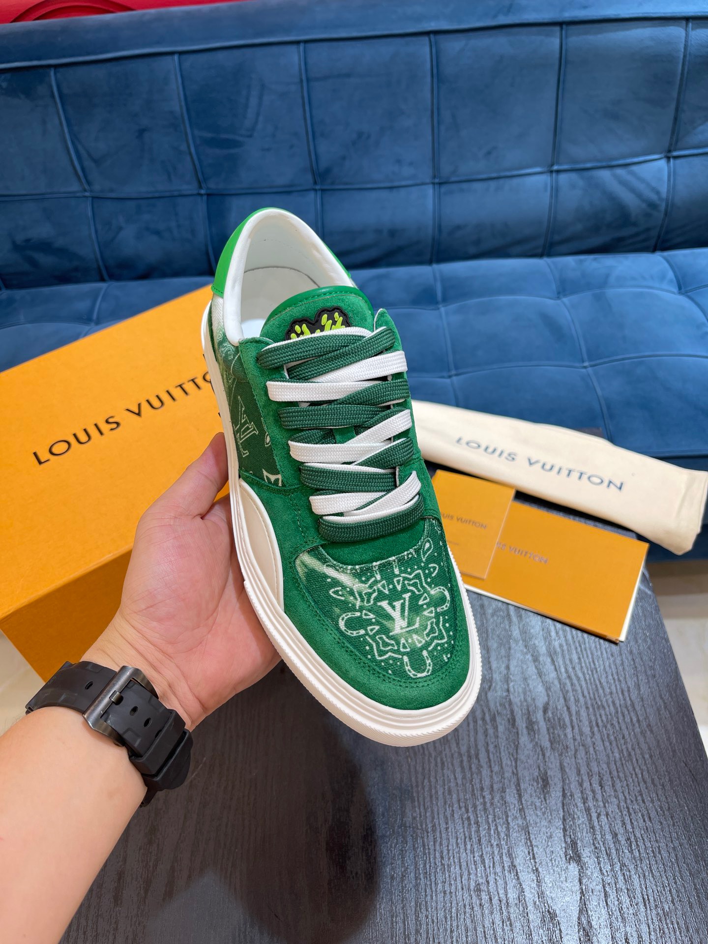 LV Ollie sneakersThese LV Ollie sneakers feature a large Damier pattern in denim with double laces and calfskin trim. Monogram flower-embellished rubber outsole with a handwritten Louis Vuitton logo on the back of the shoe. Size 39-44(38.45 customized)