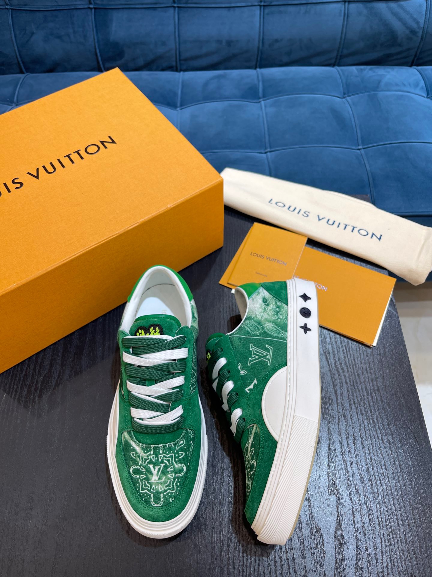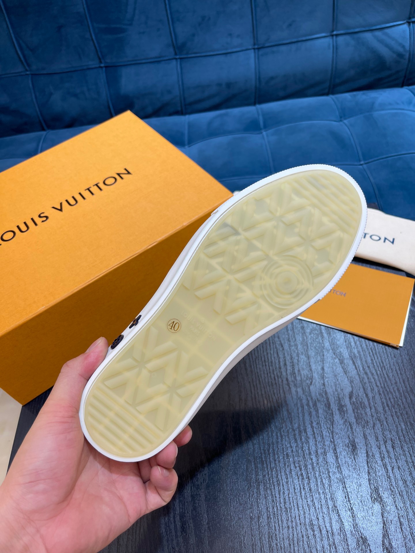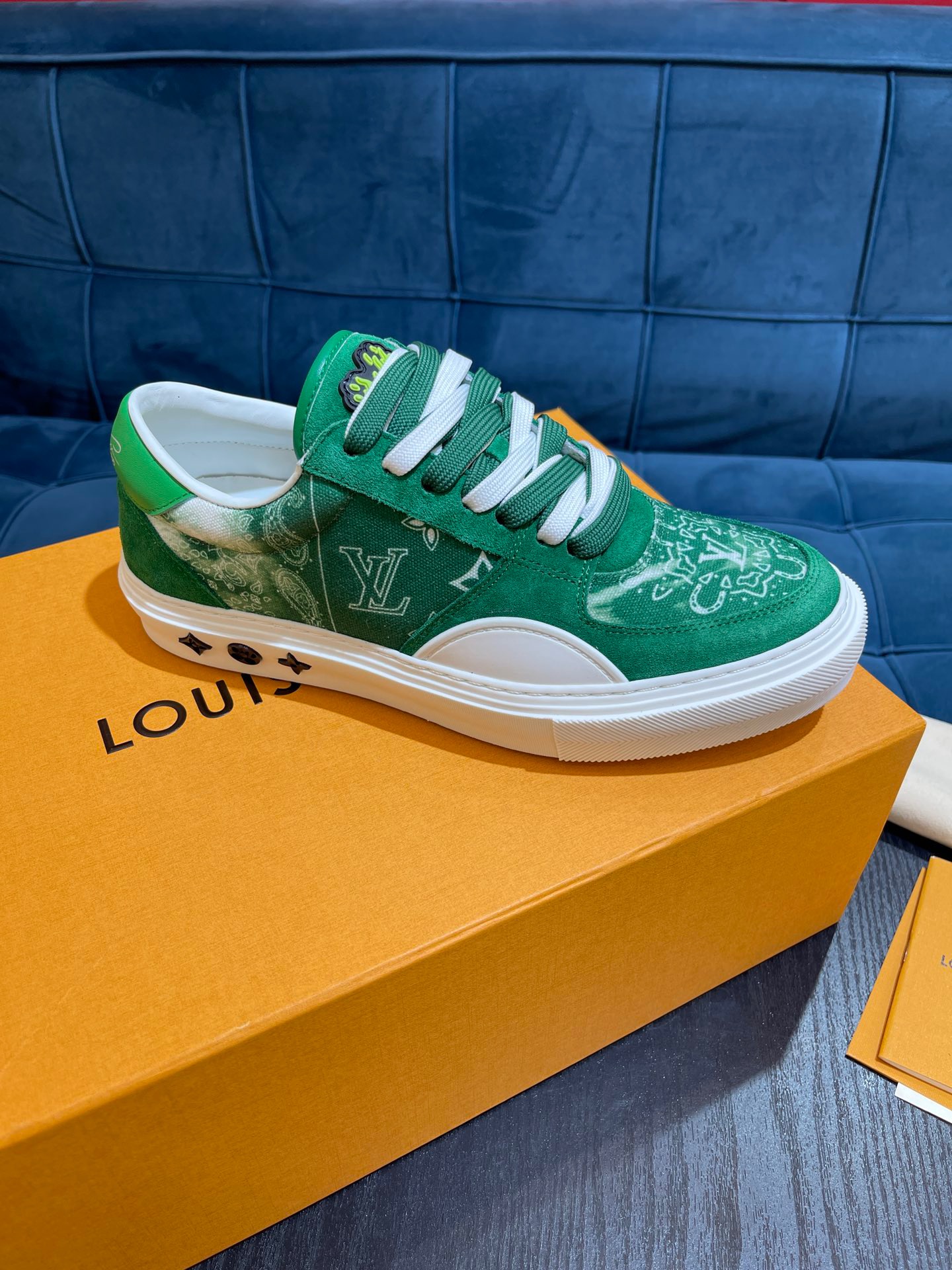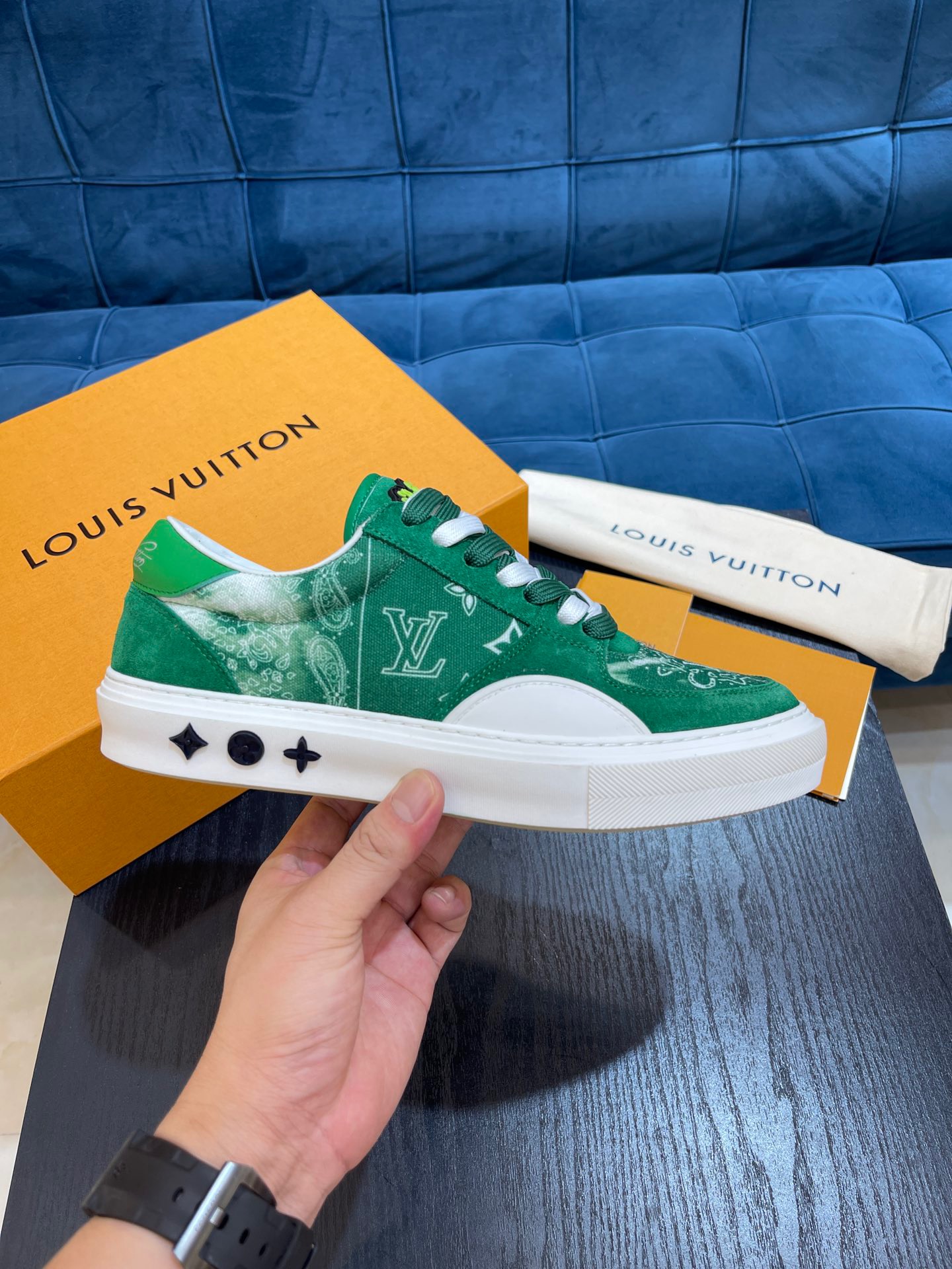 LV Ollie sneakersThese LV Ollie sneakers feature a large Damier pattern in denim with double laces and calfskin trim. Monogram flower-embellished rubber outsole with a handwritten Louis Vuitton logo on the back of the shoe. Size 39-44(38.45 customized)