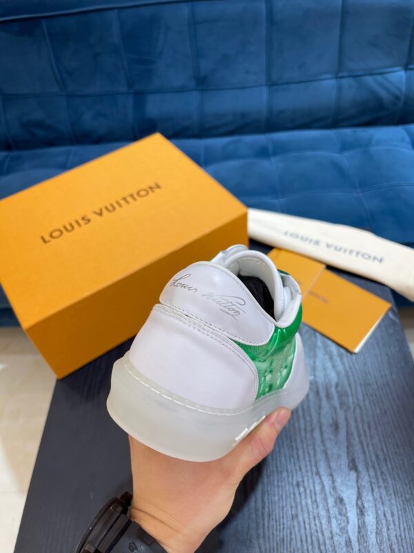LV Ollie sneakersThese LV Ollie sneakers feature a large Damier pattern in denim with double laces and calfskin trim. Monogram flower-embellished rubber outsole with a handwritten Louis Vuitton logo on the back of the shoe. Size 39-44(38.45 customized)