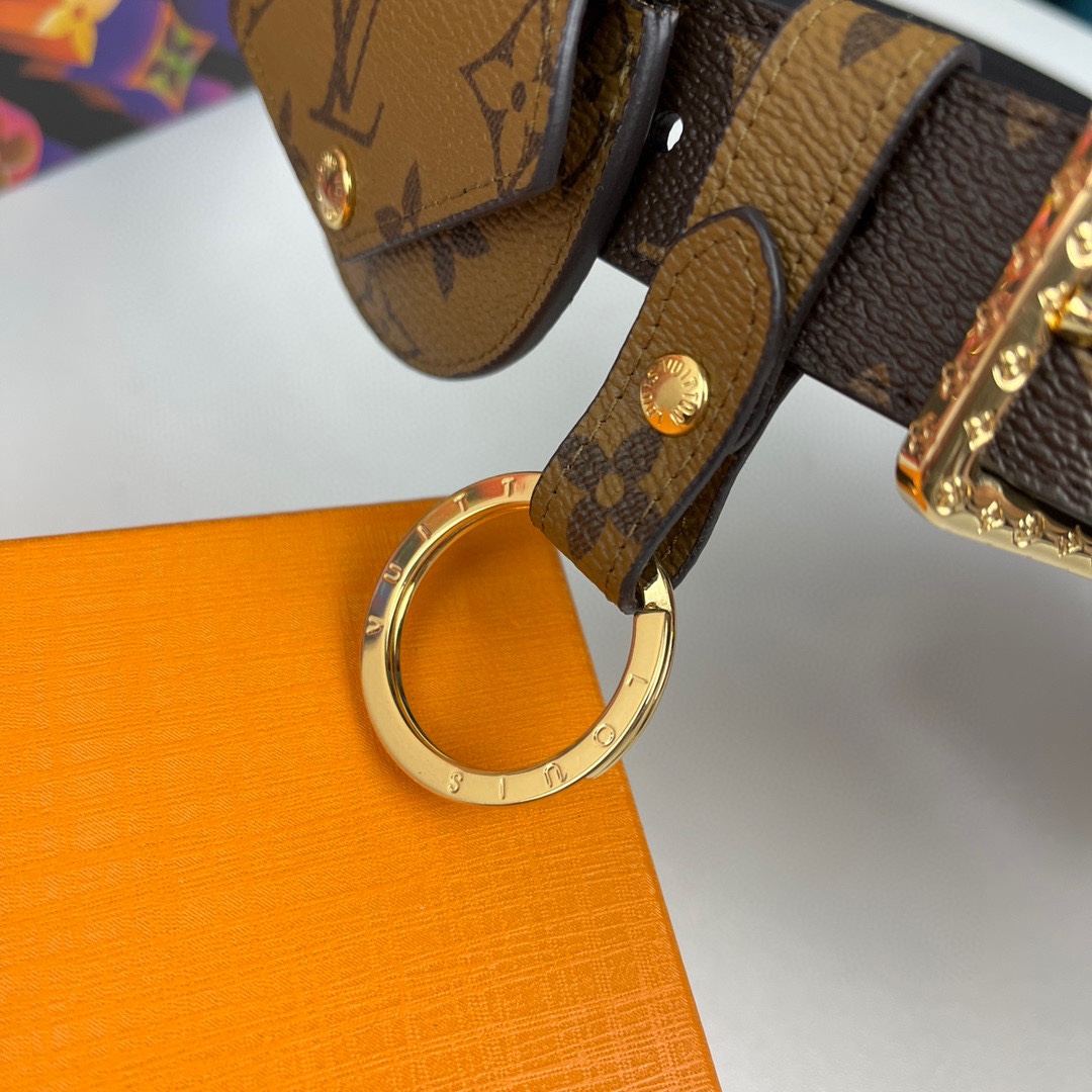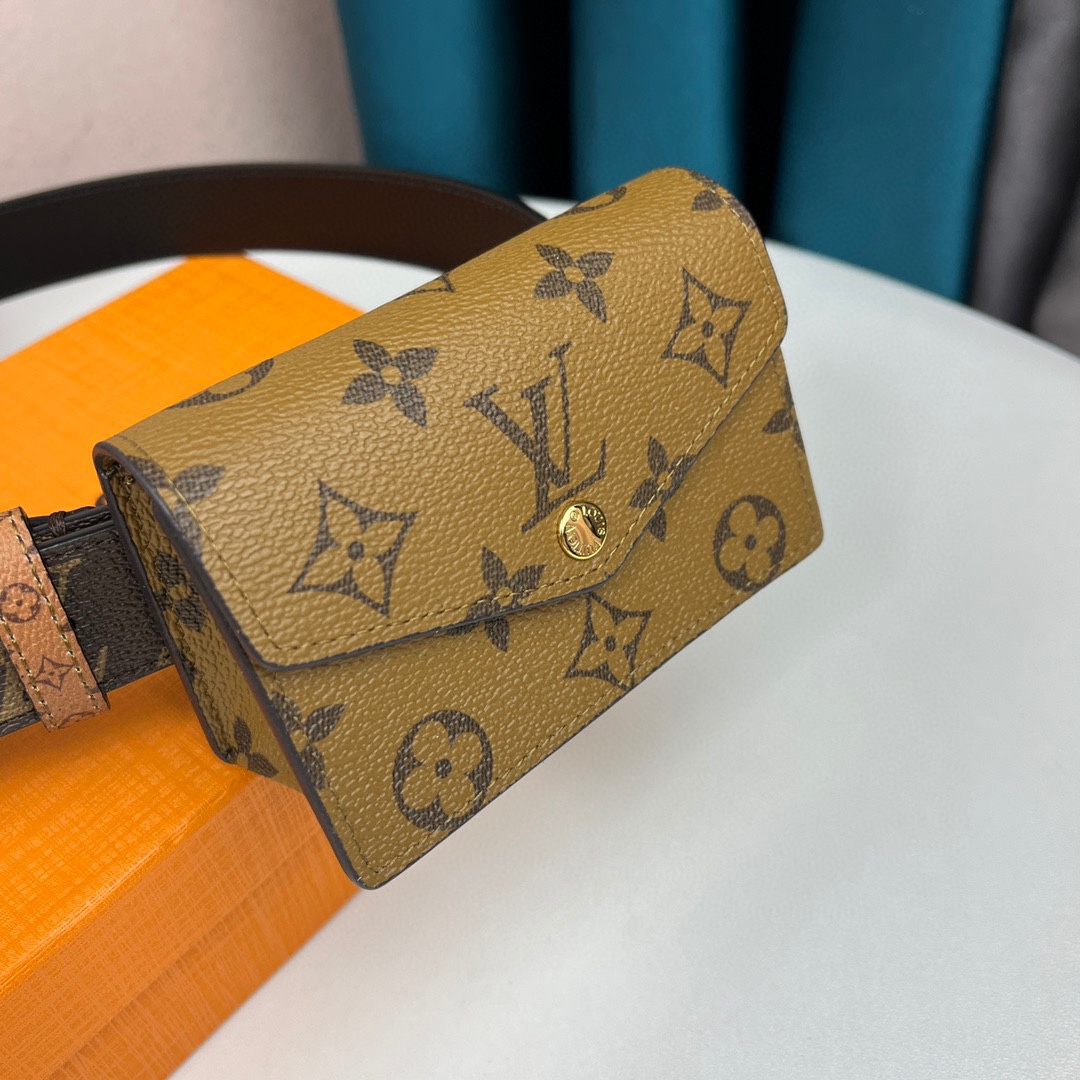 Louis Vuitton’s women’s latest limited edition belt. Width 30mm. Pin buckle design belt with square bag, round small bag, key chain, detachable as other ornaments, highlighting the unique style of multi-functional design. 75087990