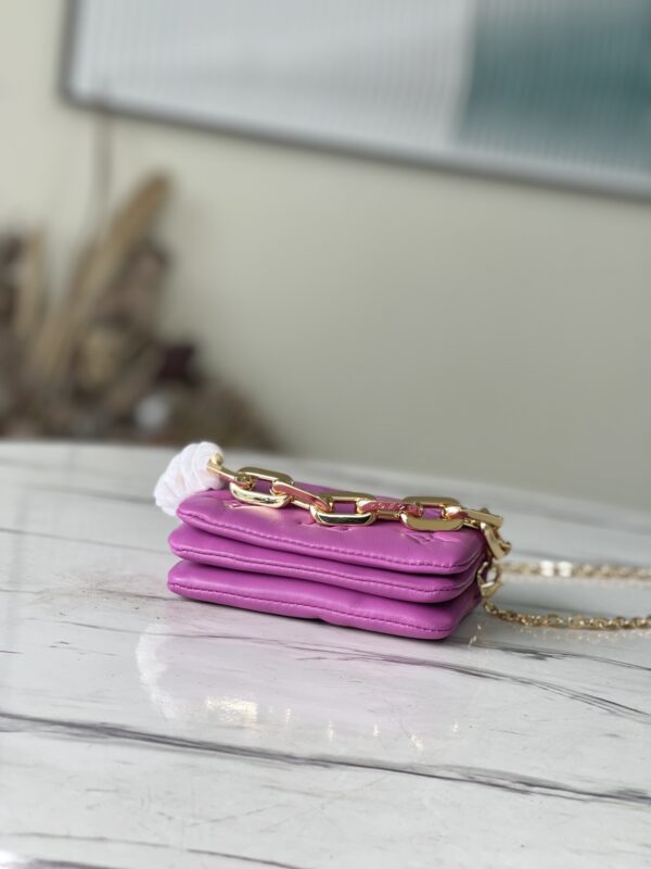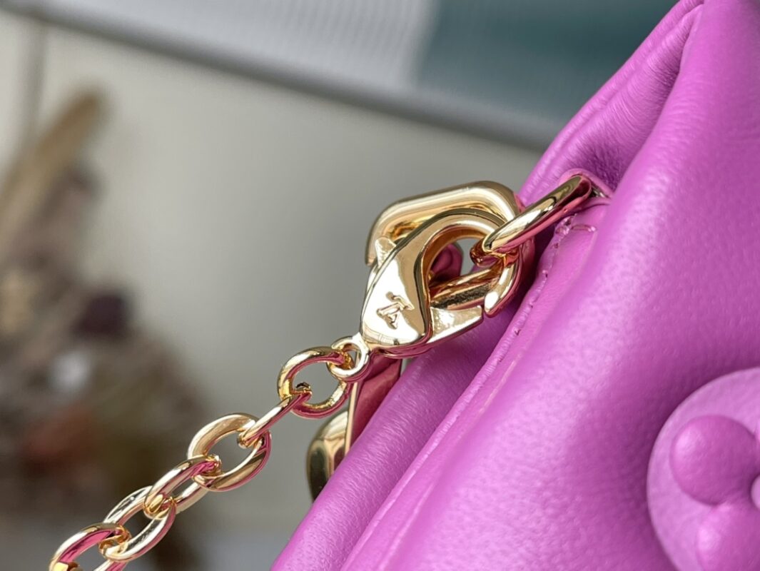 Rose Red Mini Coussion Arrived Black and gold matching is really a high-end sense of walking. Three-dimensional printed logo, soft and glutinous lambskin material with golden long thin chain short and thick chain, hand carry, cross-body, waist back are all small and delicate, completely grown in aesthetics, once again pay for cuteness. Size: 13×4×10