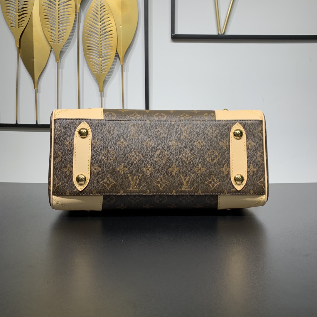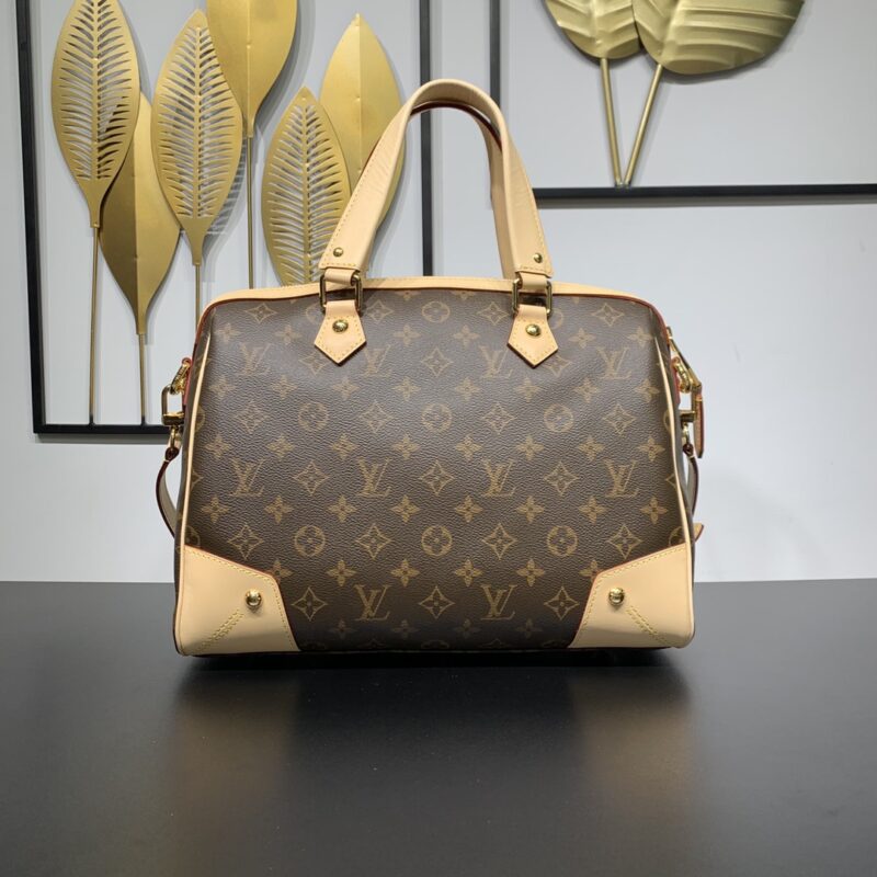 Timeless, the Retiro bag is crafted in signature Presbyopia fabric with leather trim and LV embossed leather plaque. The elegant, understated shape and roomy body add to the practicality. 35x 27x 16cm (length x height x width)