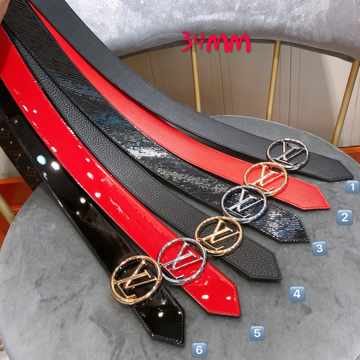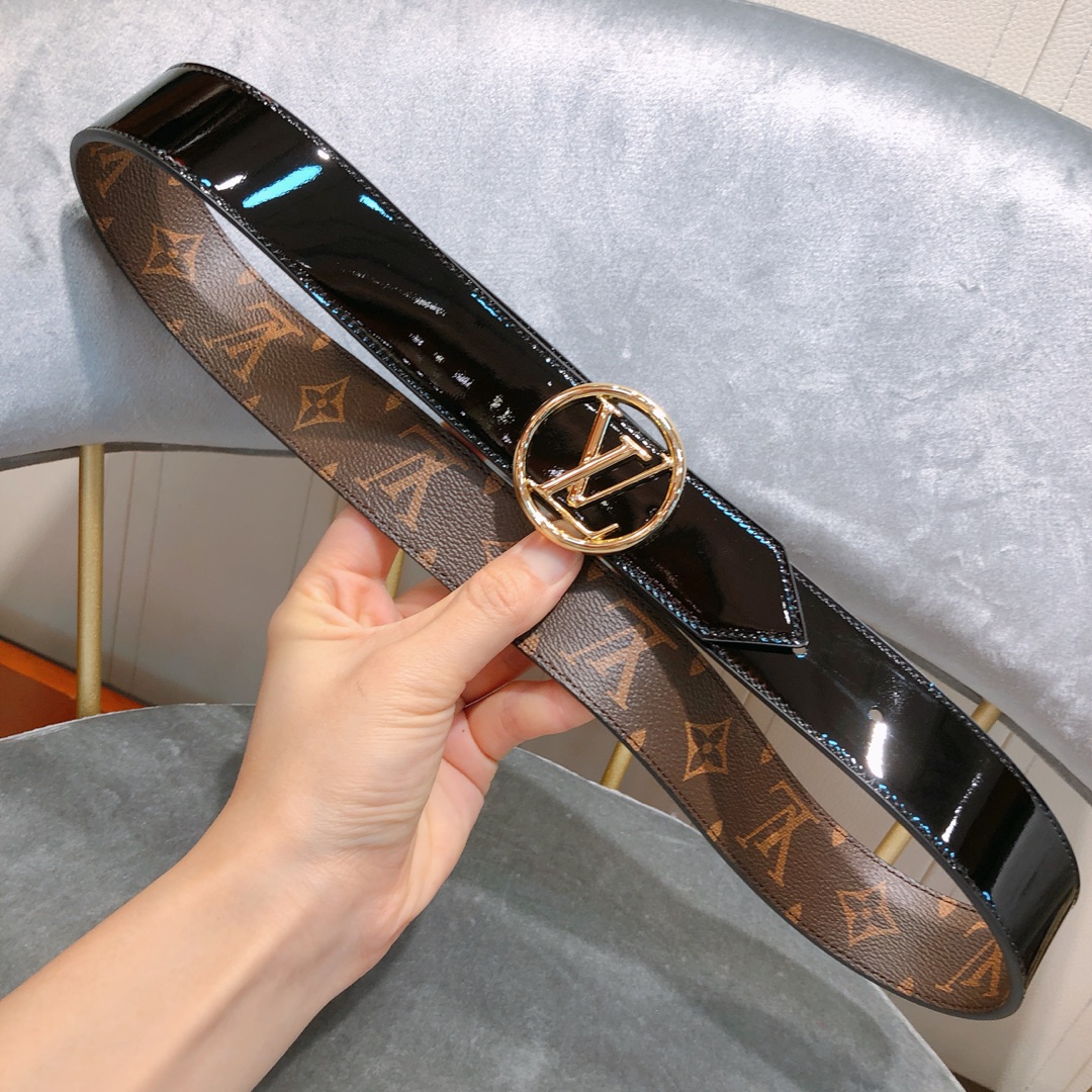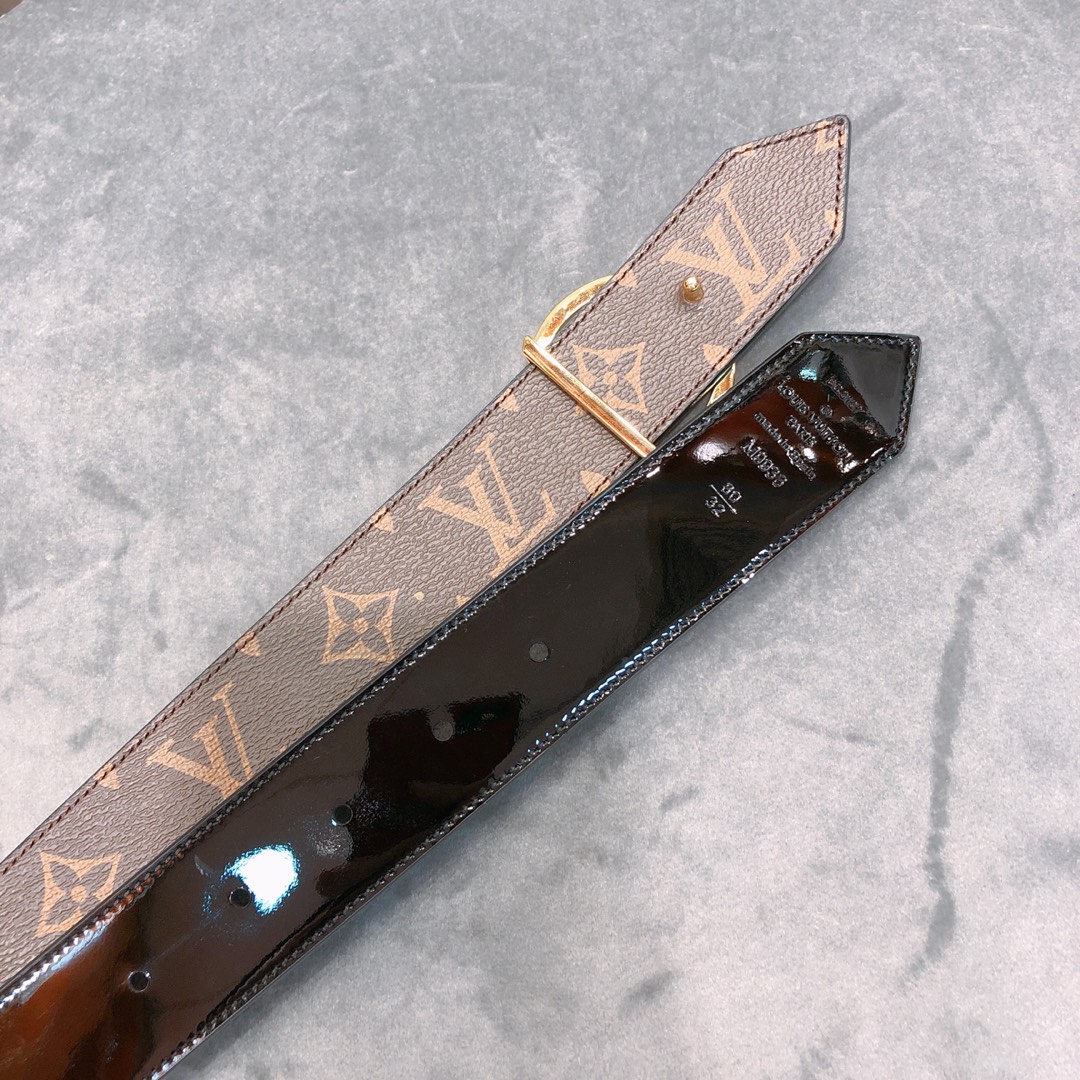 Louis Vuitton 19 Round LV letter buckle with classic reversible belt, 34mm wide. Signature Epi leather reversed. Monogram canvas, which can be elegant or casual, further highlighting the brand identity. 280880111