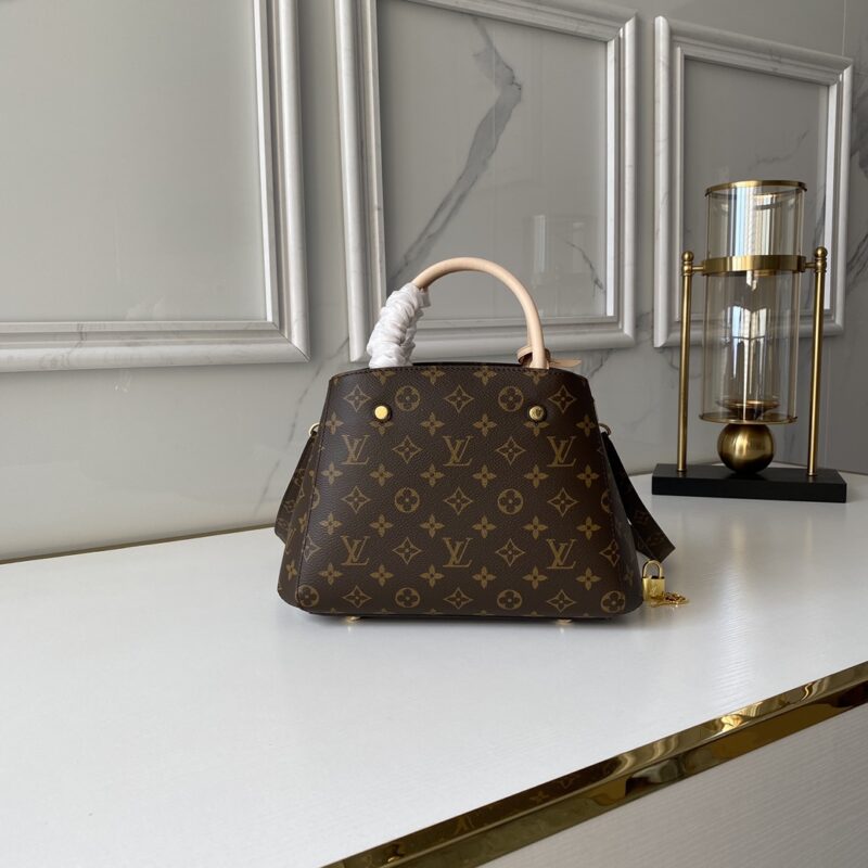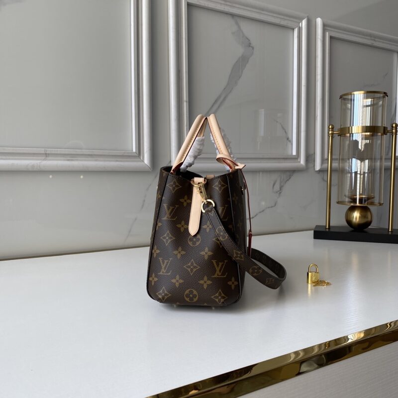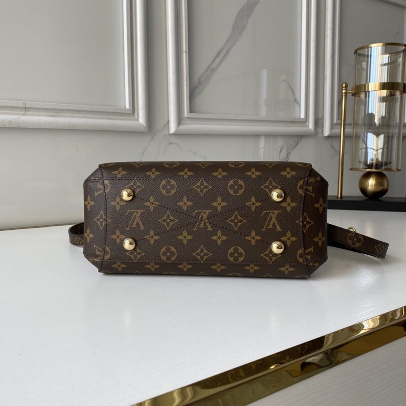 Combining a playful, structured exterior with a neatly organized interior, the Montaigne BB bag in signature Monogram canvas is the ideal business bag. This handbag is equipped with an extra long detachable shoulder strap, which can be carried by hand, on the arm or cross-body for a stylish look. 29 x 20 x 13 cm (LxHxW) – Detachable crossbody strap – Natural cowhide trim – Leather key cover – Shiny golden brass hardware – Burgundy microfiber lining – 1 with Padlocked central zipped compartment, 2 wide compartments, 2 smartphone pockets, 1 flat pocket – protective studs on bottom