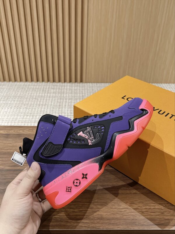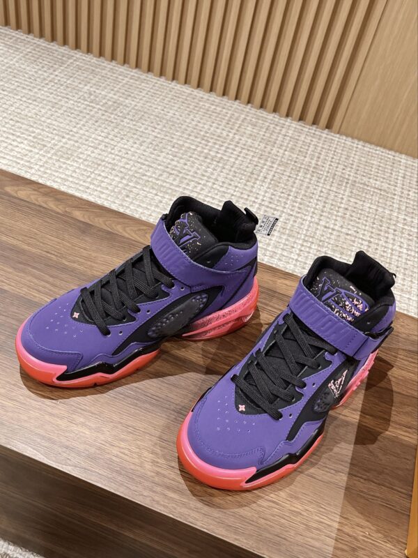 LV2023 Autumn/Winter New TRAINER 2 Couple Style Retro Basketball Shoes Casual Sneakers The original version was purchased and developed to make goods. This LV Trainer 2 sneaker made an eye-catching debut. 20 Reproduces the original classic created by Virgil Abloh inspired by retro basketball shoes. Calfskin leather shapes the body, with a padded collar and adjustable Velcro straps. LV basketball logo marked on the tongue, Monogram flower embellished rubber outsole and exquisite packaging to send to the counter. Size: Female models 35-40 male models 39-45
