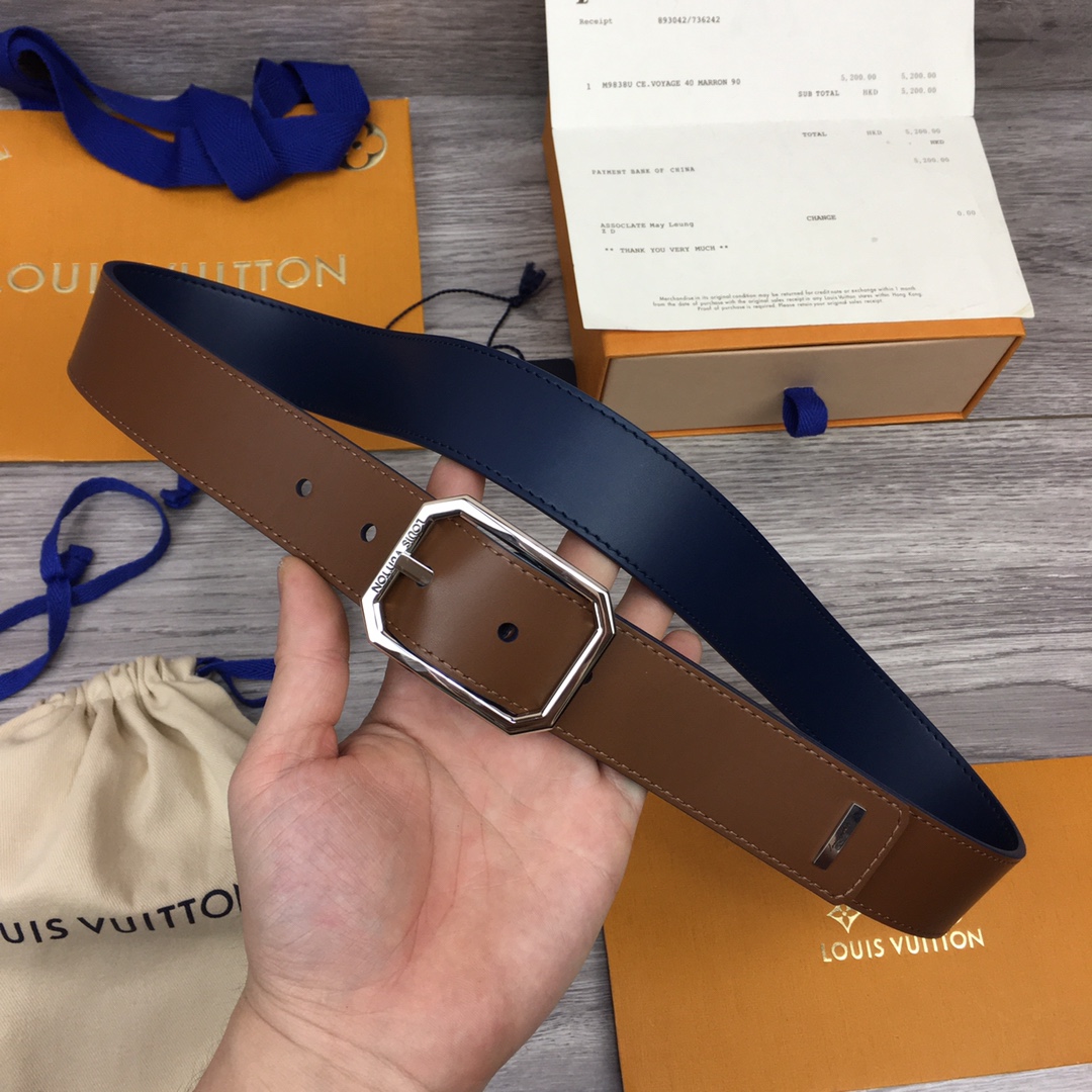 Louis Vuitton men’s belt. Width 35cm. This belt is made of double-sided original calfskin. Color: black-green. Enamel nameplate on both sides of the tail. Square pin buckle. Double-sided use. 35080231