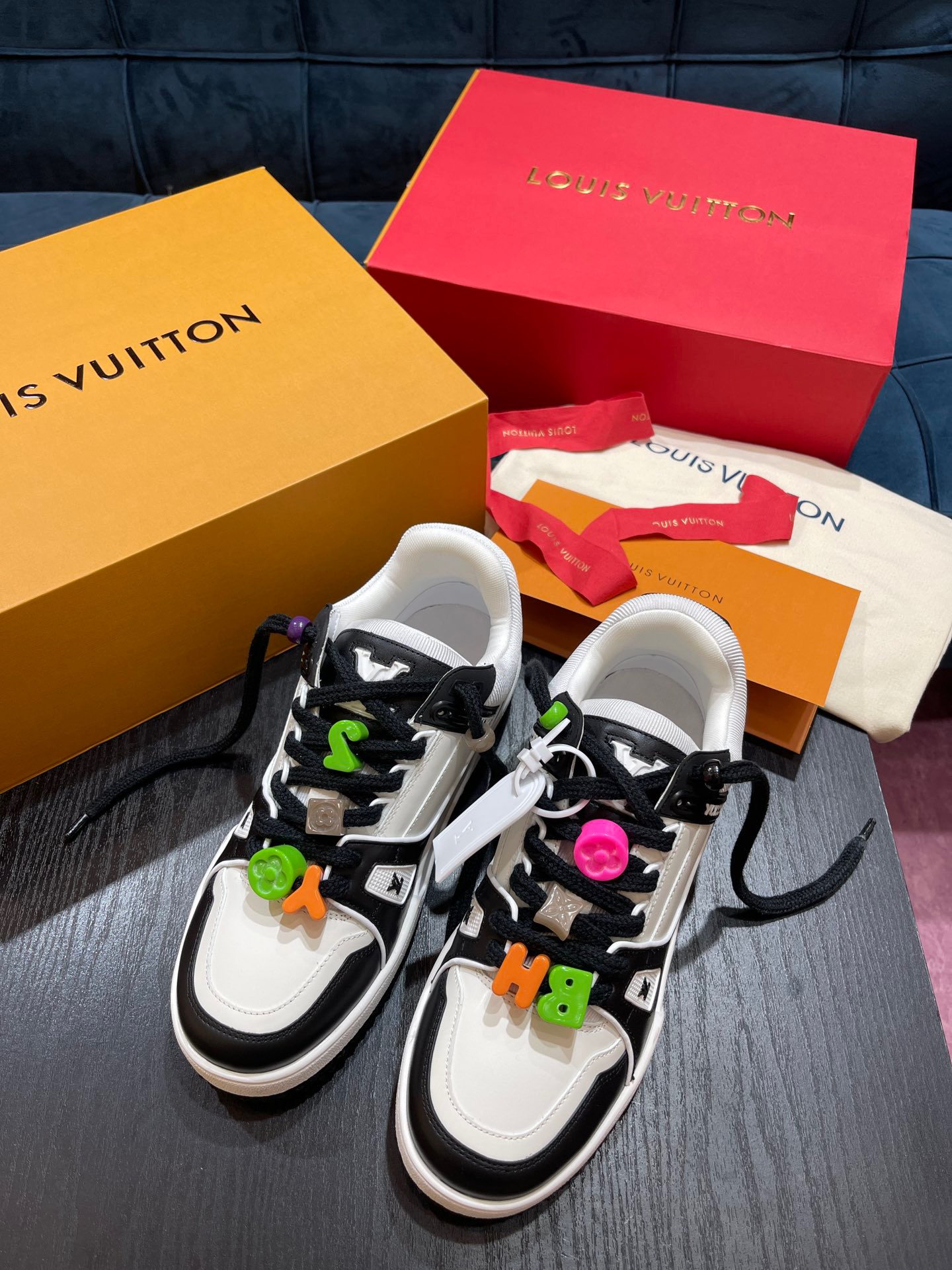 Louis Vuitton SS23 Show Trainers This pair of “fat” Trainers are so eye-catching! The three-dimensional and full-color shoe body is matched with the contrasting letters and logos on the shoelaces. The whole shoe looks like it is made of plasticine, and it is full of childlike innocence among the cool and trendy.Beautifully packaged at the delivery counter ▪️Material: Original custom imported first layer cowhide▪️Inner lining: Original customized breathable mesh lining▪️Outsole: Original open mold TPU combination outsole▪️ Bottom thickness: 3.5CM,▪️Size: Women’s 35-40 Men’s 39-45