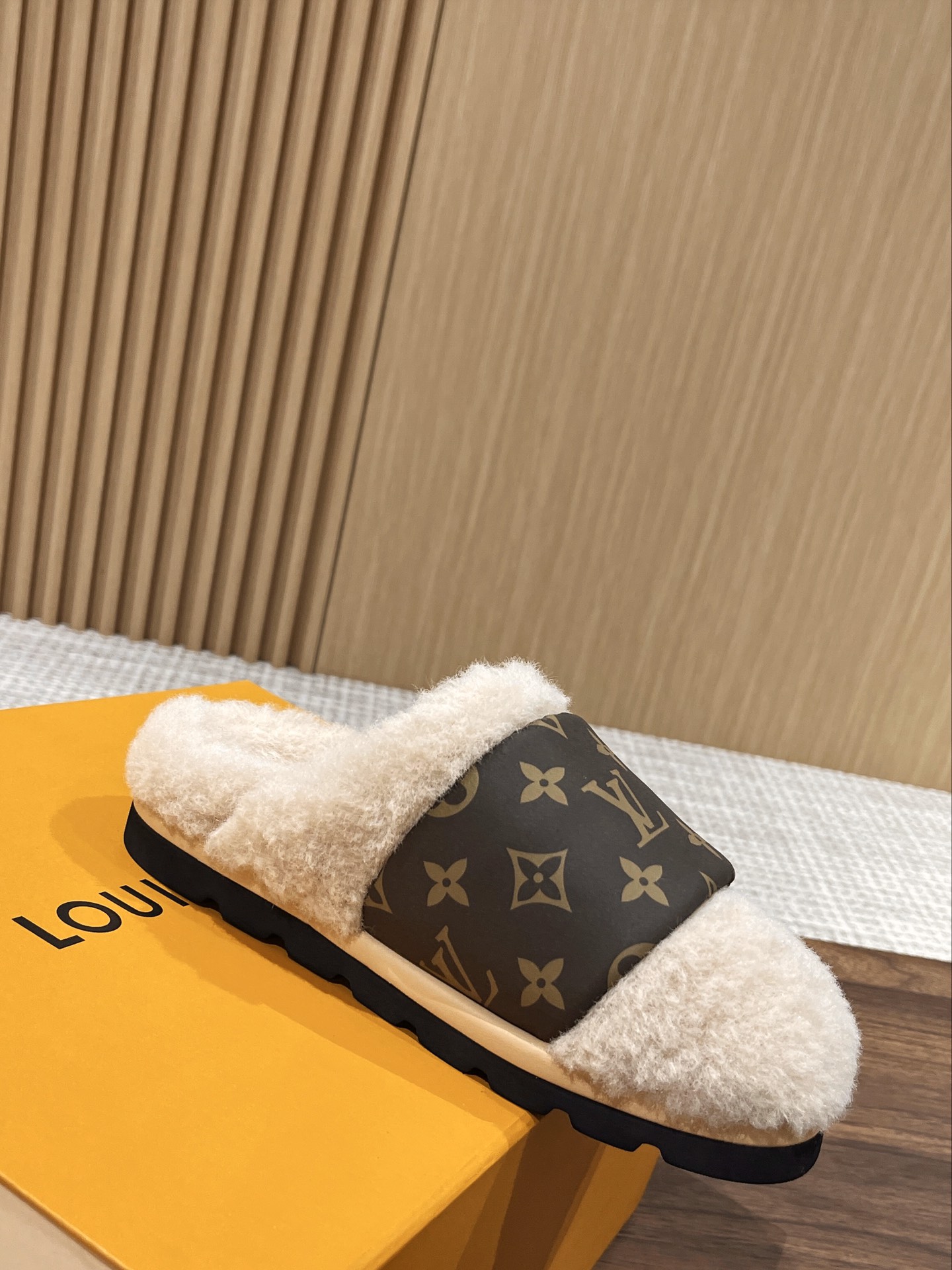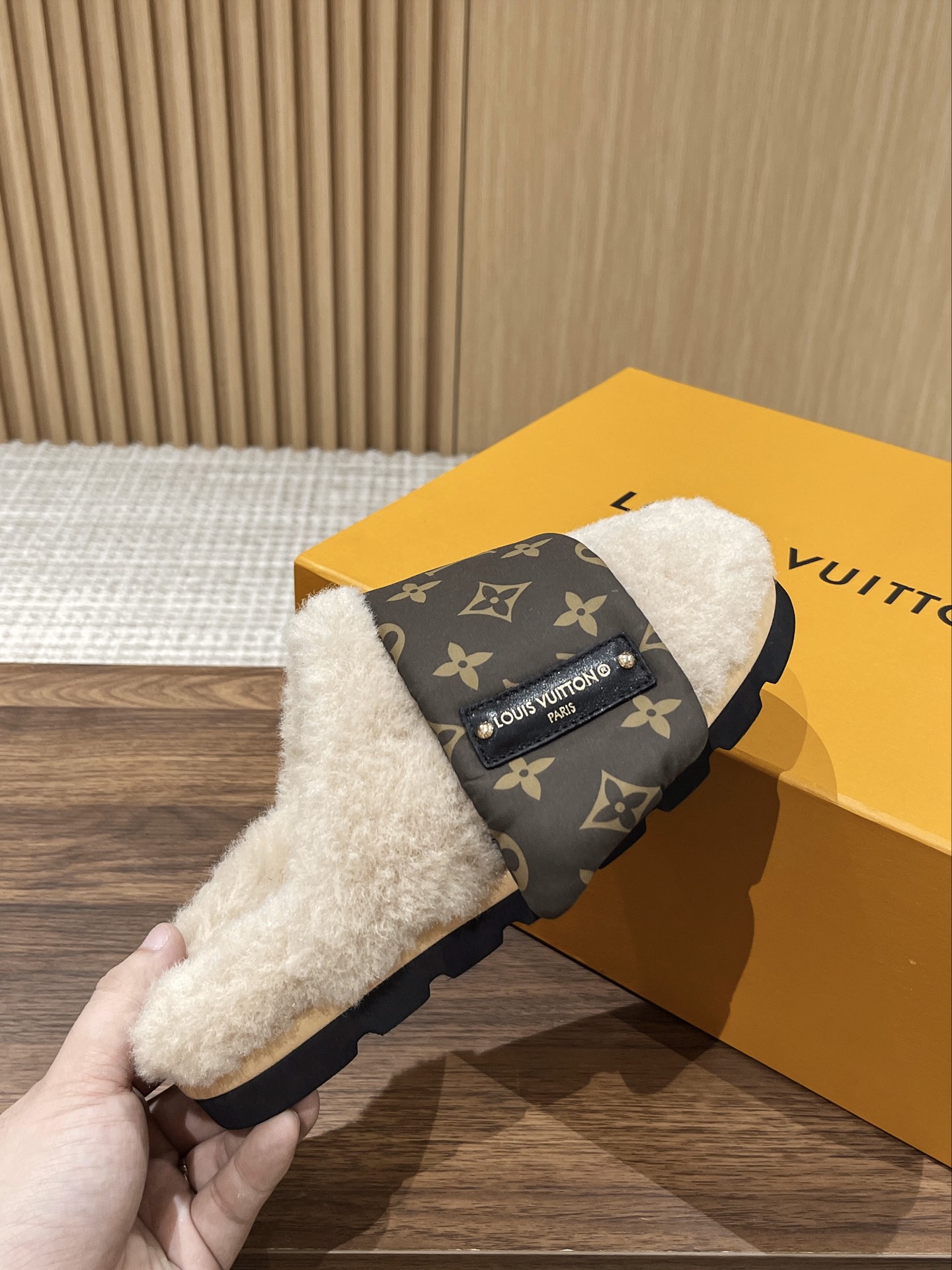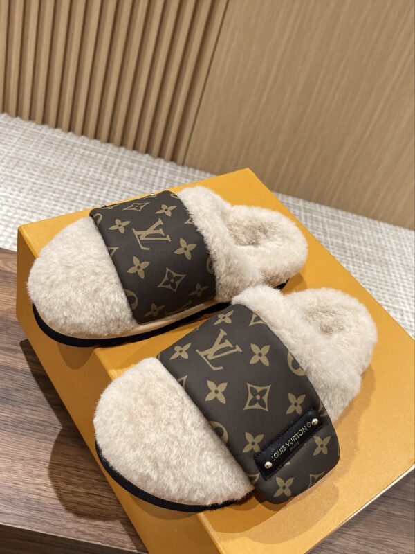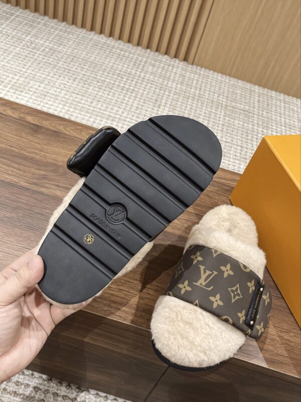 Louis Vuitton Explosion Presbyopia Slippers Original imported presbyopic fabric + wool material. Original custom wool lining Exclusive molded rubber foam + TPU edge outsole Thickness: 4CM.Size: Women’s 35-40 Men’s 39-45M