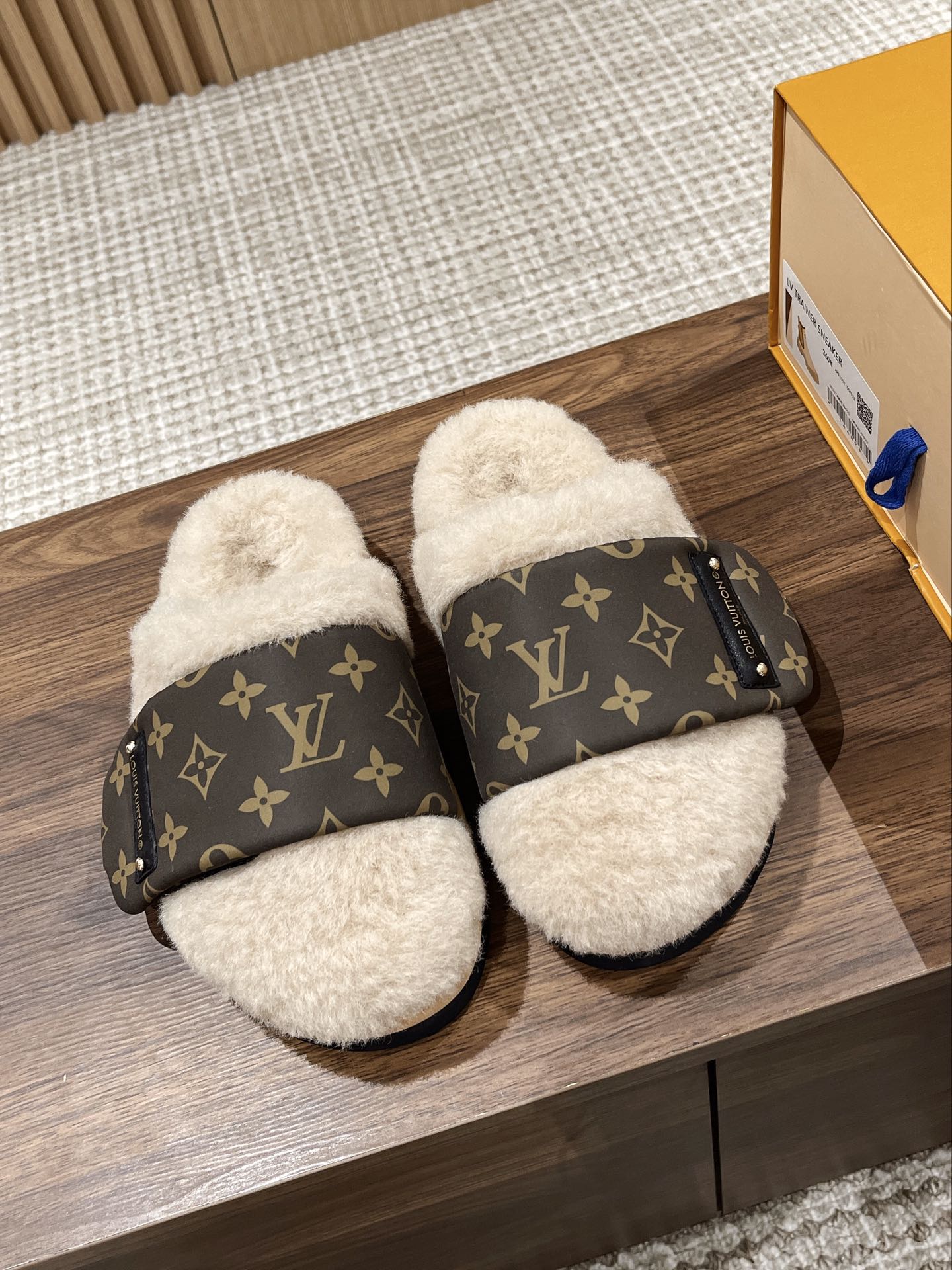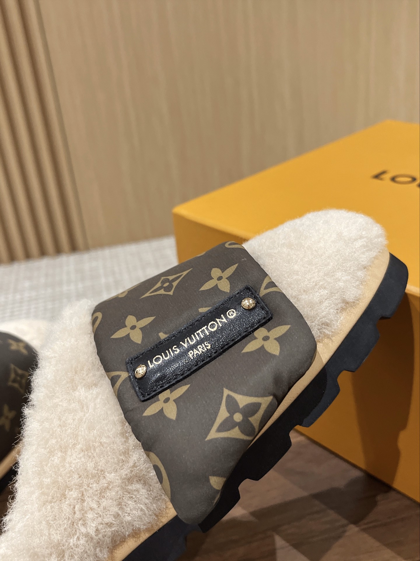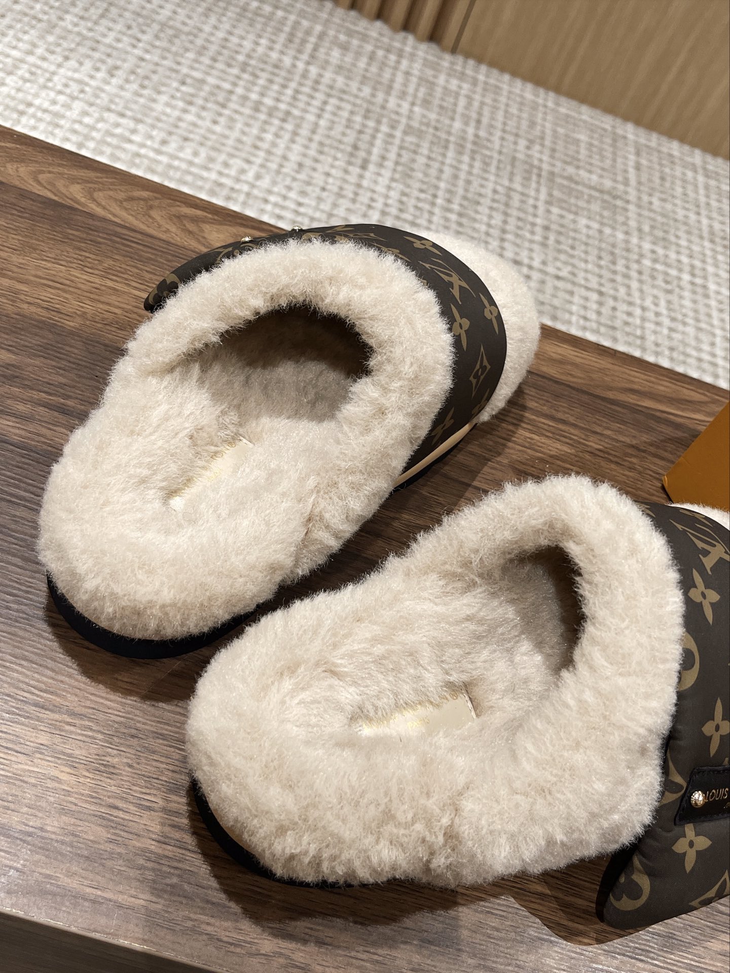 Louis Vuitton Explosion Presbyopia Slippers Original imported presbyopic fabric + wool material. Original custom wool lining Exclusive molded rubber foam + TPU edge outsole Thickness: 4CM.Size: Women’s 35-40 Men’s 39-45M