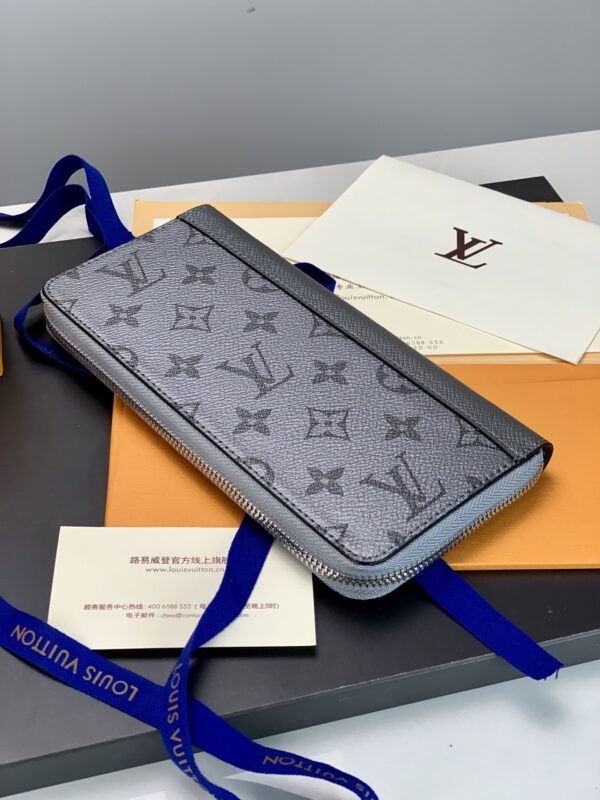 Ash The Zippy Vertical wallet from the Taigrama leather goods collection features a slim silhouette in Taiga leather and Monogram coated canvas, featuring a classic wraparound design with compartments and card slots for cards, bills and coins. 10 x 20 x 2 cm.