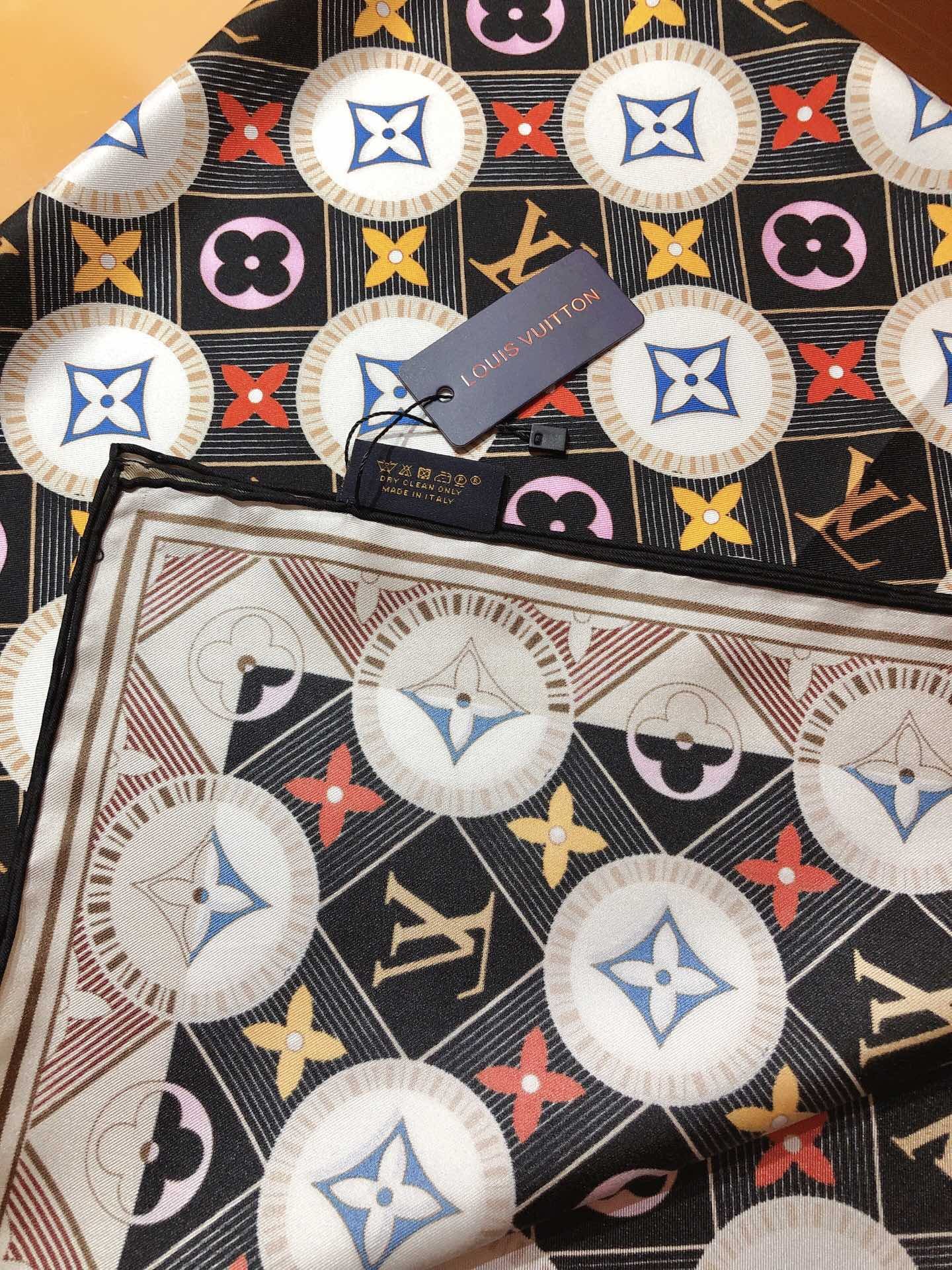 SLV2320Original Lv [Monogram Tiles Square] 90cm silk square, top twill silk materialPure hand-rolled edges, full of light luxury New counter The fabric pursues shape, feels crisp, and high-end designer colors are considered The upper body effect and color saturation, the color is fresh and rich, very delicate and aristocratic! Good stuff waits for no one, don’t miss it if you like it! Hurry up and drop the order 【Ingredient size: 90X90cm 100% twill silk】
