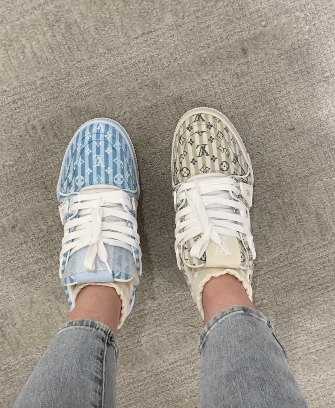 The L-V Trainer are made of Monogram embossed calfskin. The original re-engraving lasted nearly two months.