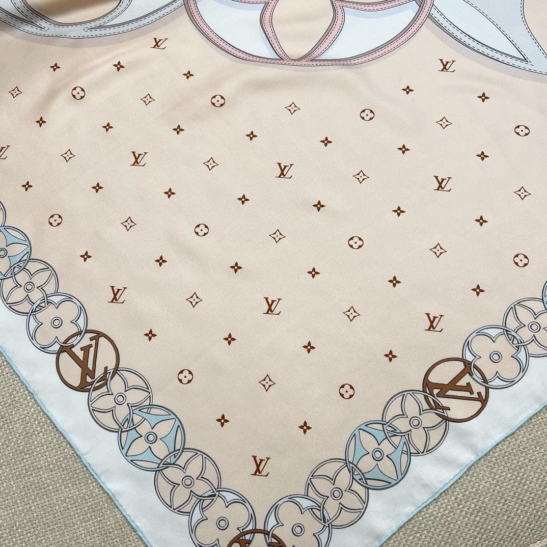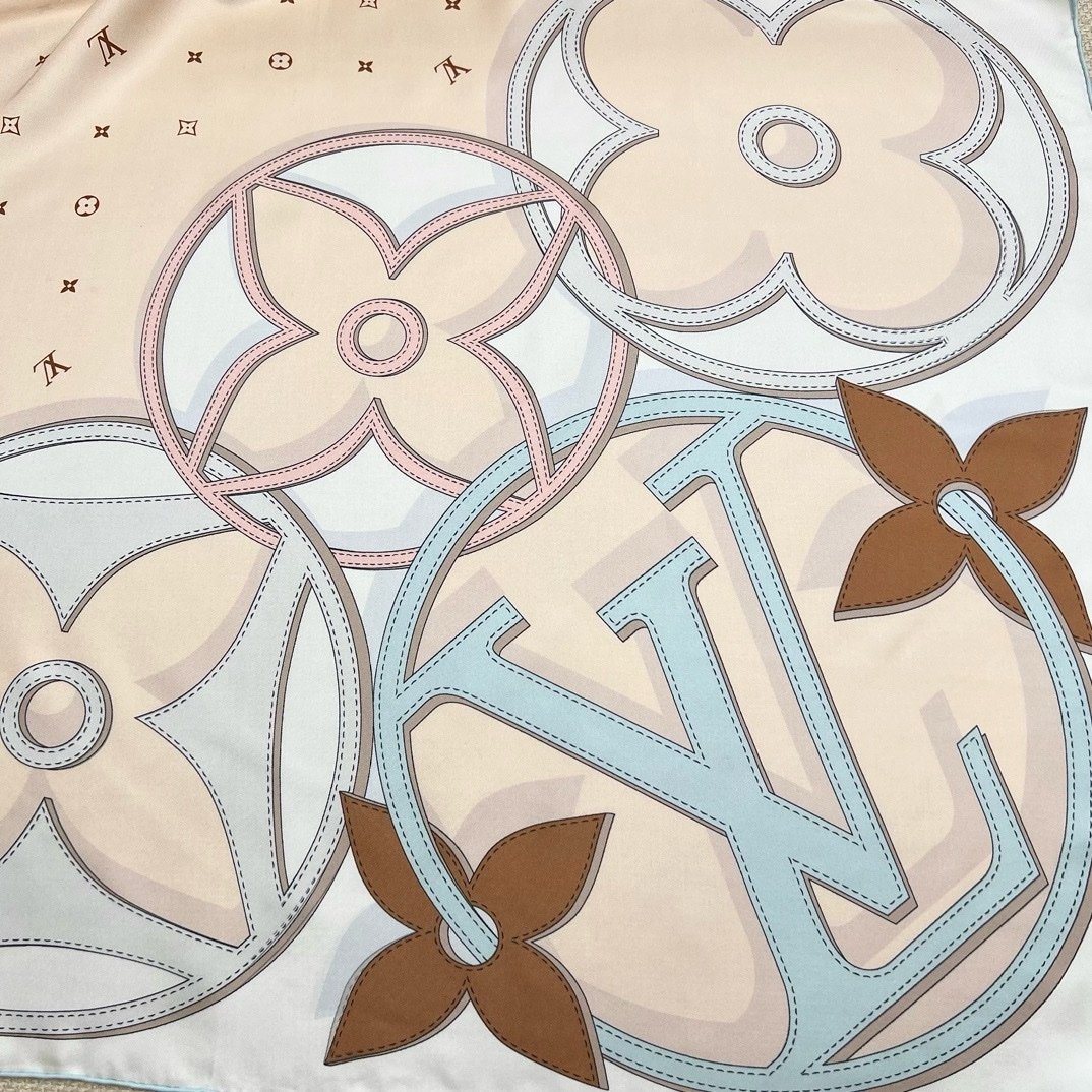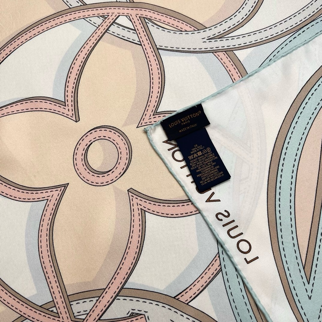 The LV Duality silk scarf combines Louis Vuitton’s iconic elements in a creative way. The LV Circle logo in one corner is surrounded by overlapping Monogram flowers, and then connected to the exquisite Nano Monogram pattern, which can inject a classic atmosphere into any shape. 033268