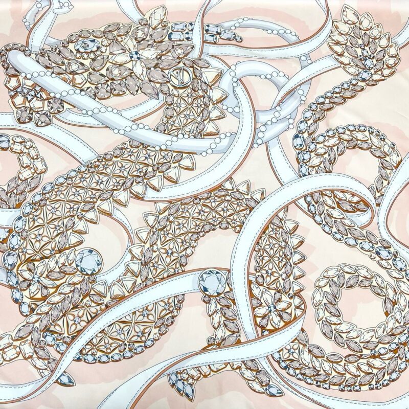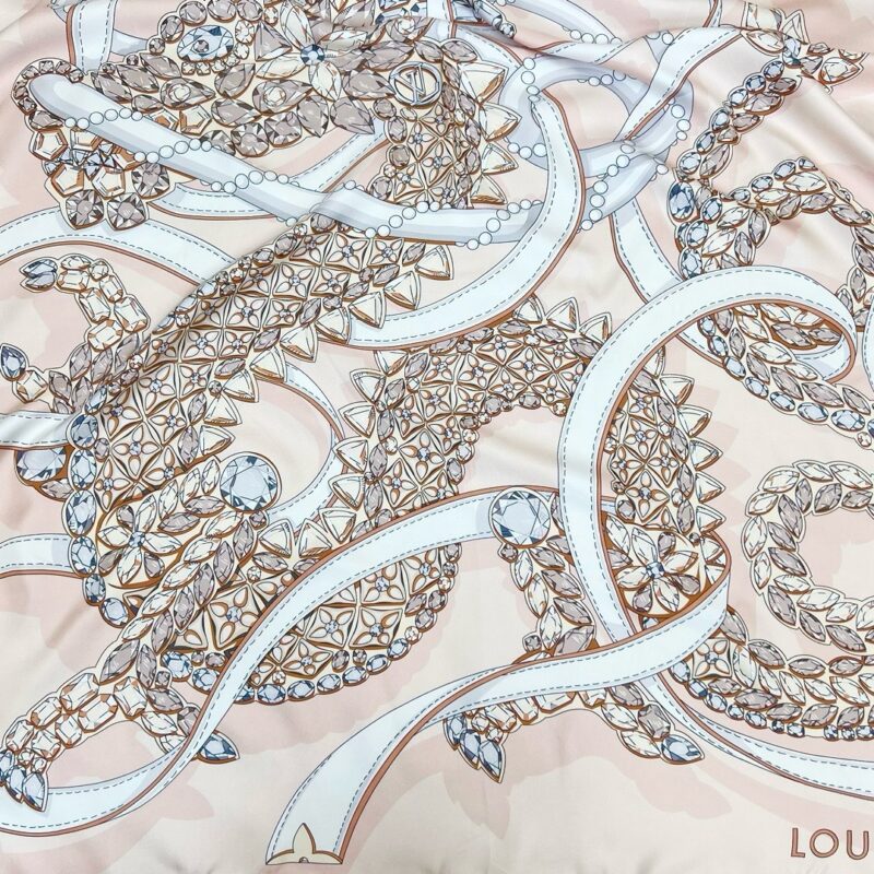 The Precious Dragon silk scarf celebrates the Lunar New Year, turning the image of the flying dragon into a magnificent jewel with sparkling gemstones. The LV Circle logo and Monogram flower are added to the brand heritage. 033246