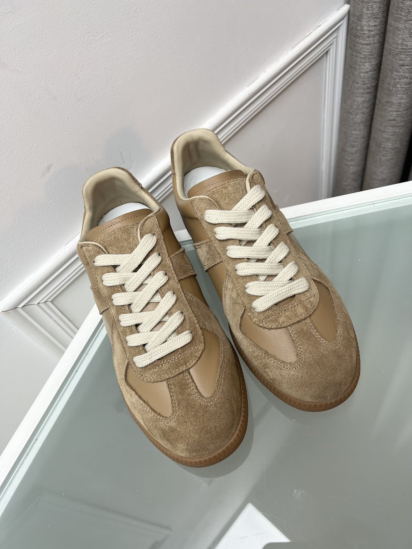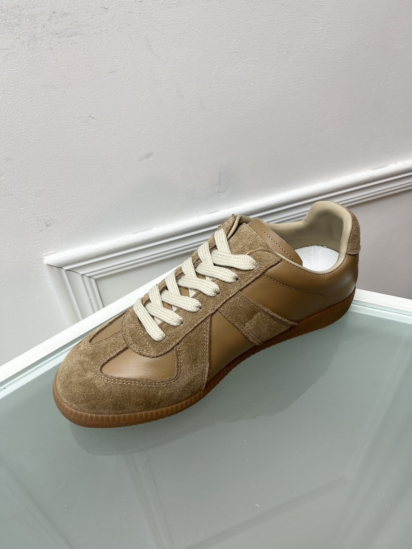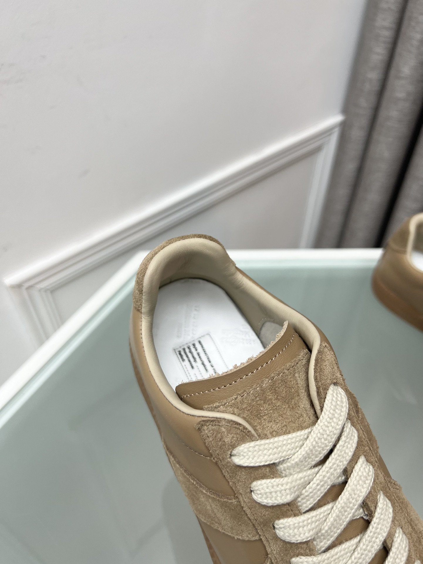 Imported nappa cowhide and suede cowhide surface, sheepskin lining, sheepskin laminated latex tiptoes (the feet are embossed with MM6logo)