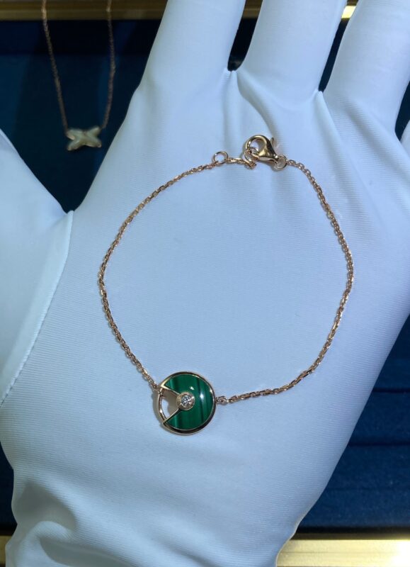 Malachite Amulet Bracelet, Rose Gold