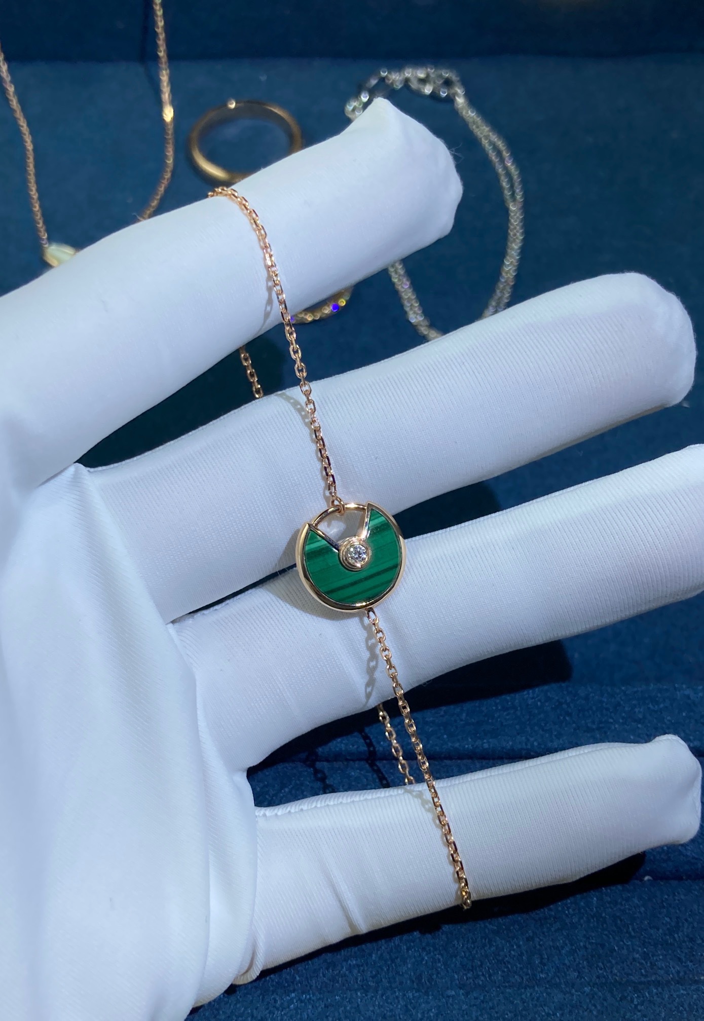 Malachite Amulet Bracelet, Rose Gold