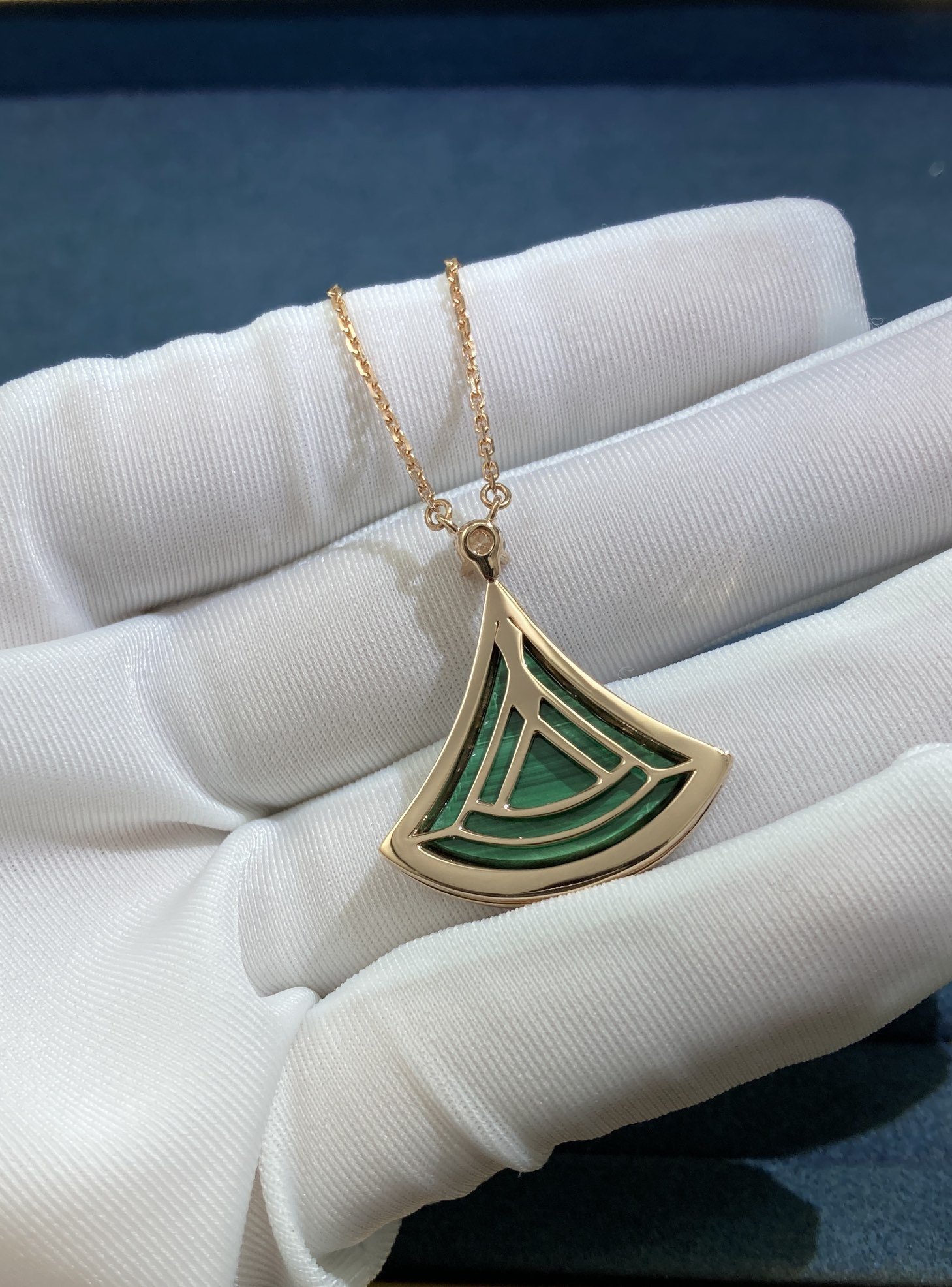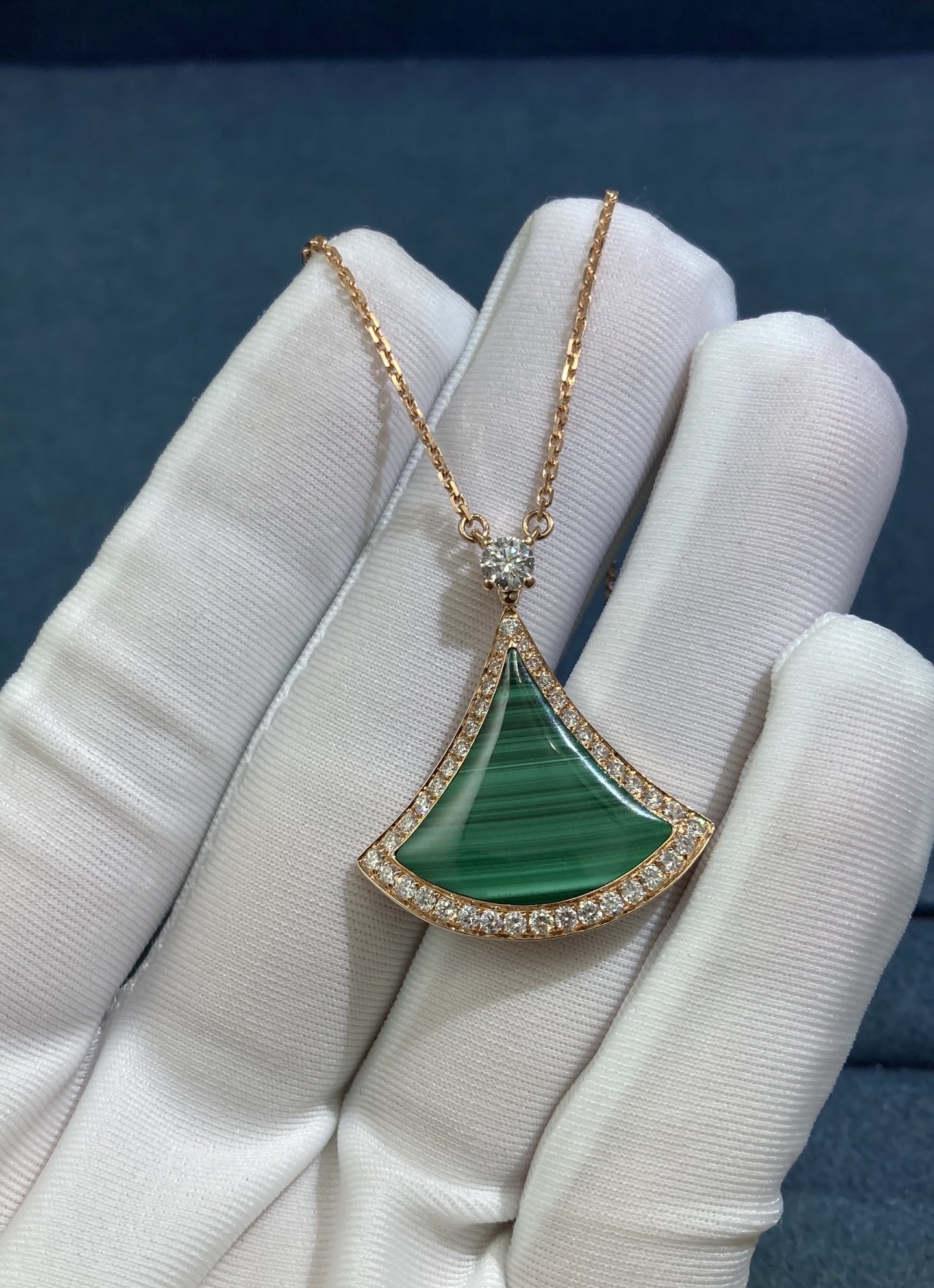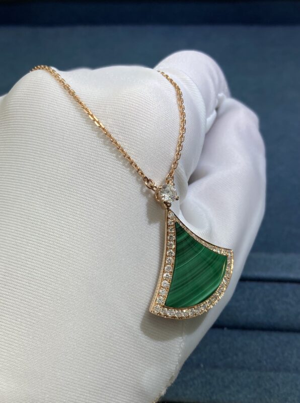 Malachite Skirt Necklace with Diamonds, Rose Gold