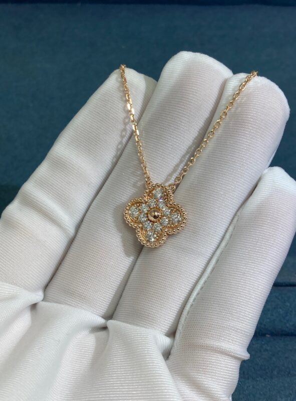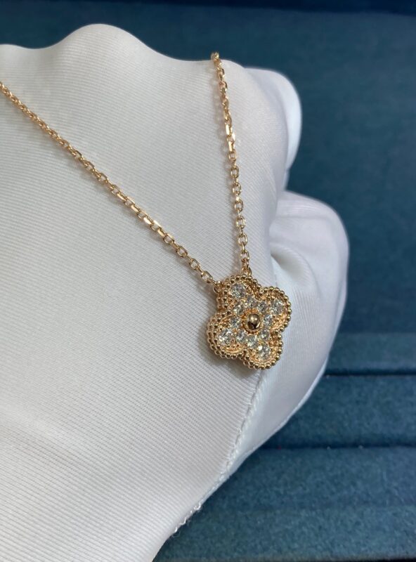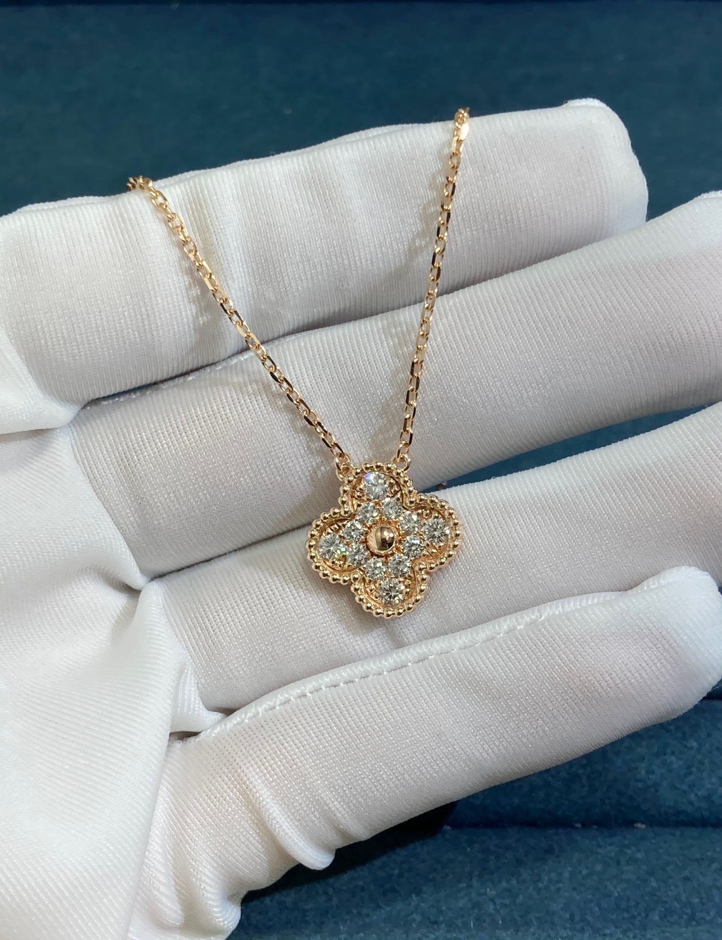 Van Cleef&Arpel Alhambra Medium Diamond Clover Necklace, Rose Gold