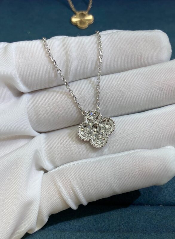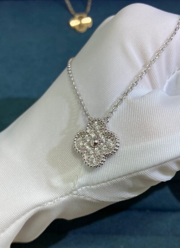 Van Cleef&Arpel Alhambra Medium Diamond Clover Necklace, White Gold
