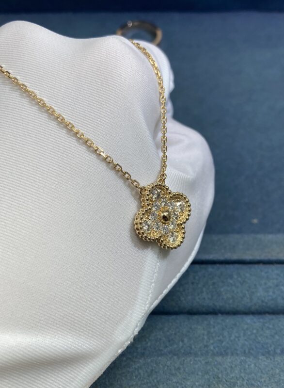 VCA Medium Diamond Clover Necklace, Yellow Gold
