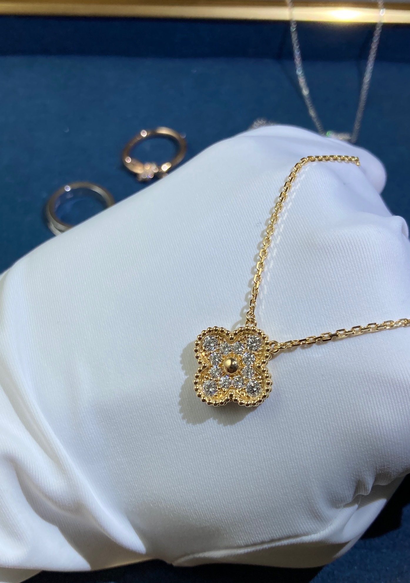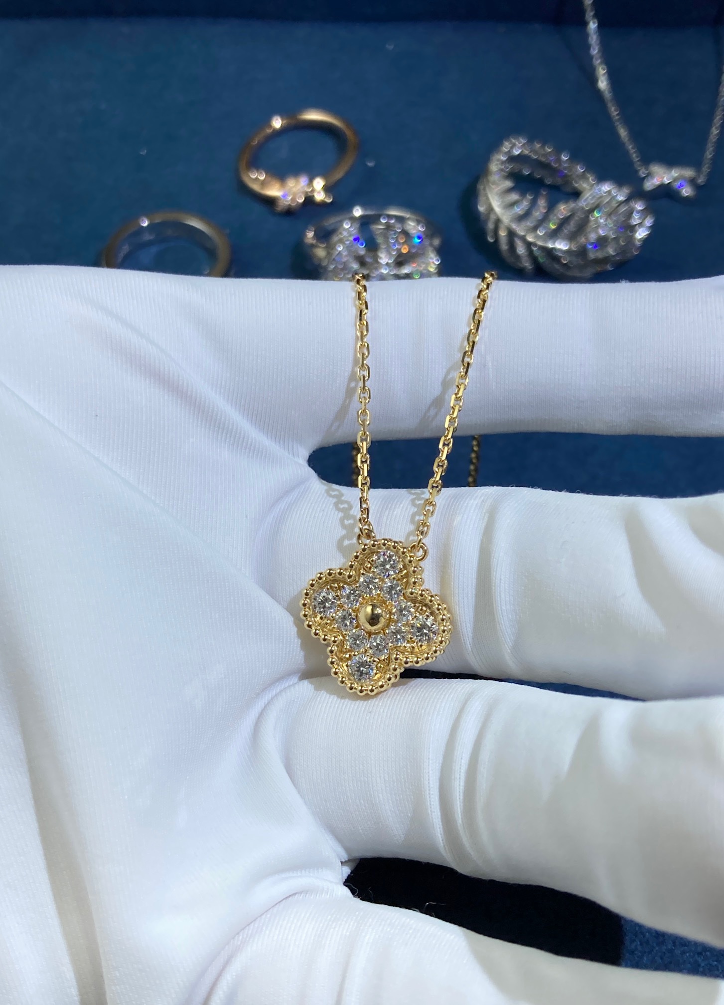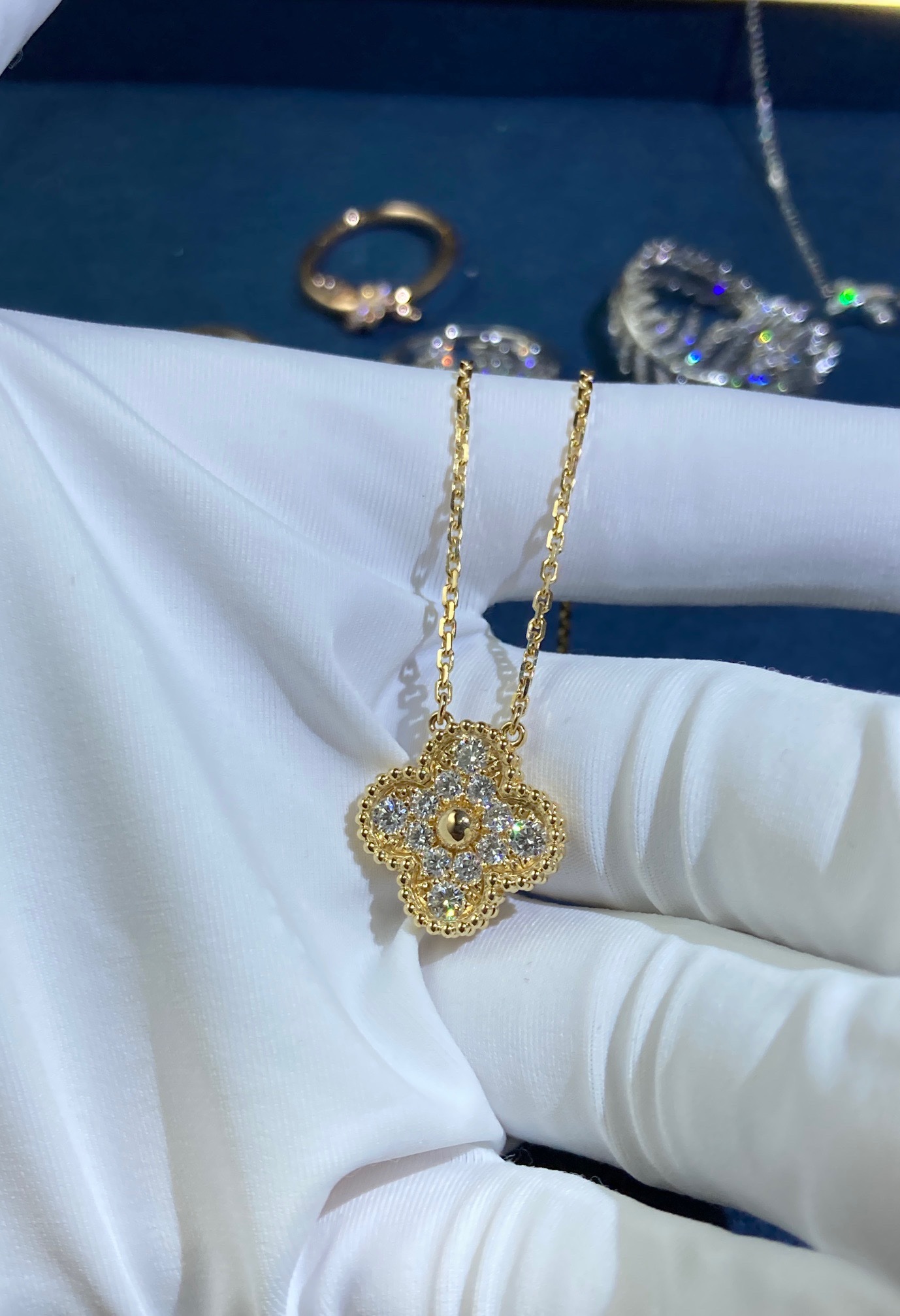 Medium Diamond Clover Necklace, Yellow Gold