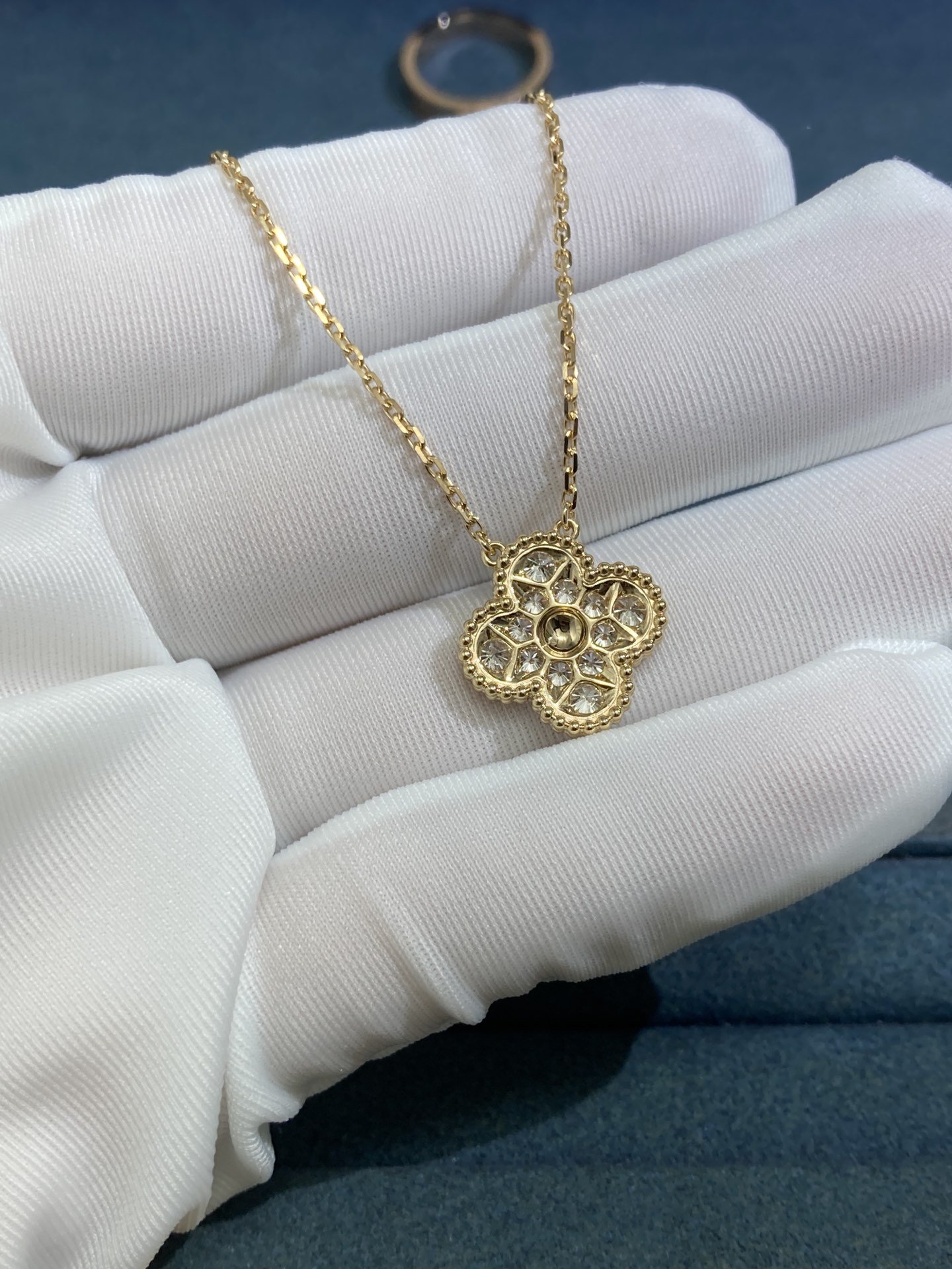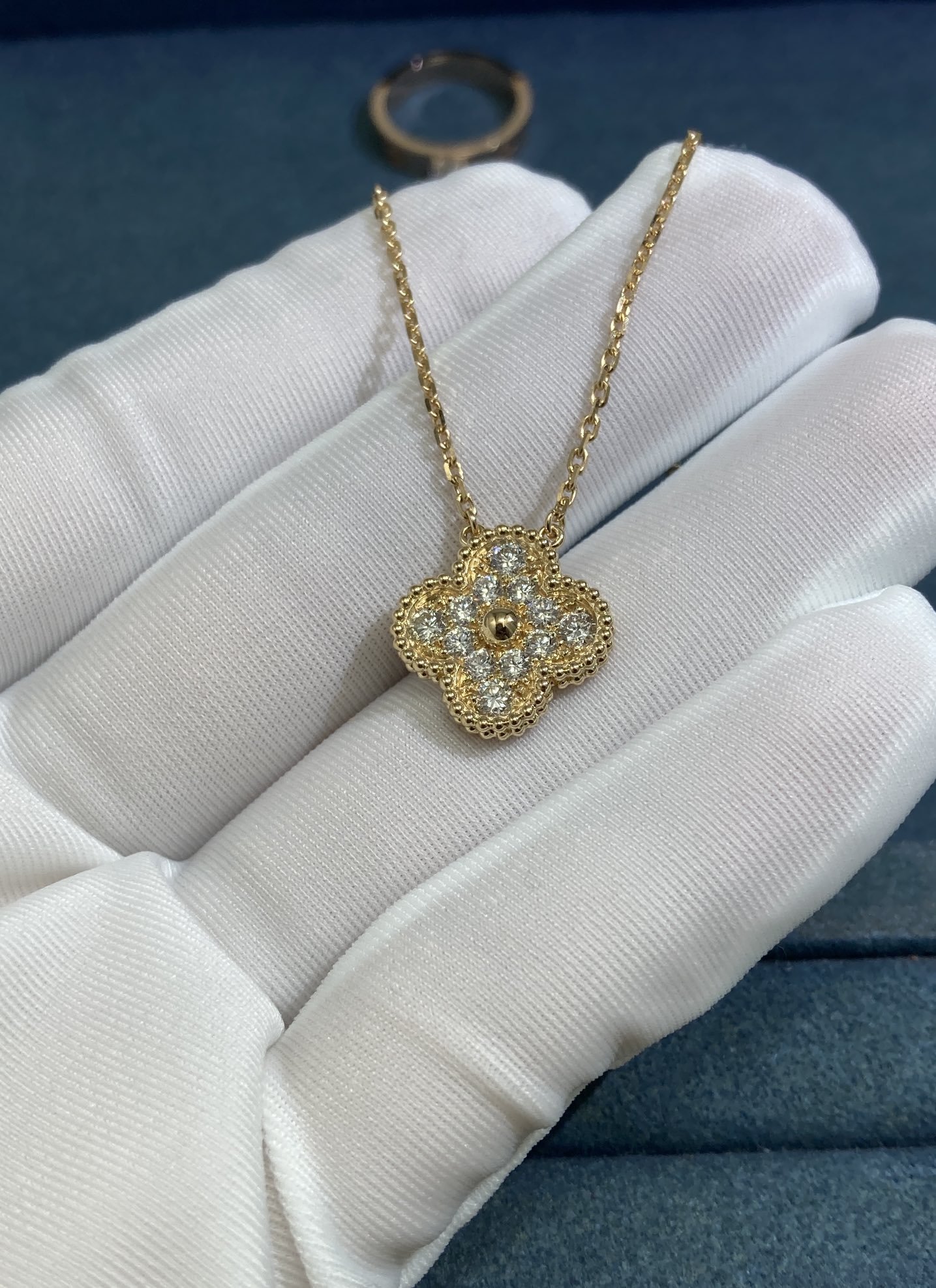 VCA Medium Diamond Clover Necklace, Yellow Gold