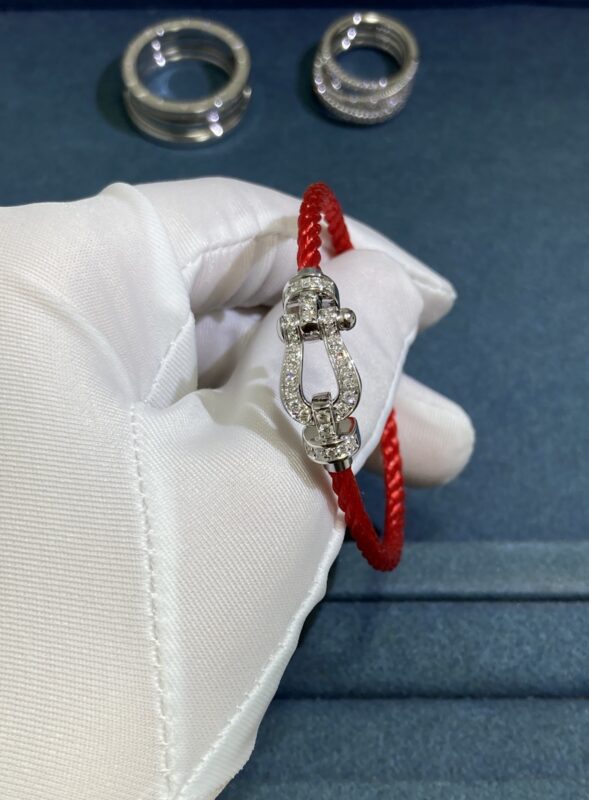 Medium Horseshoe Clasp Full Diamond Bracelet, White Gold