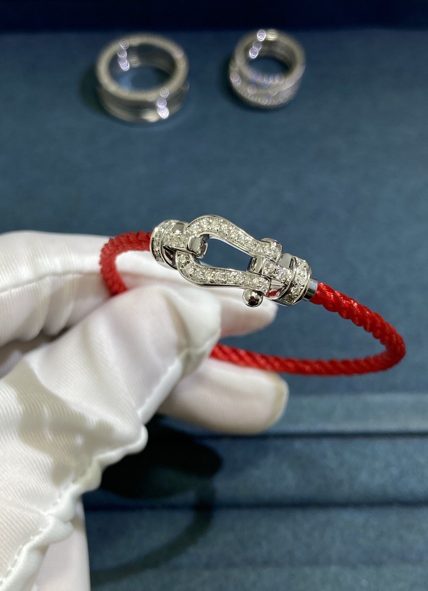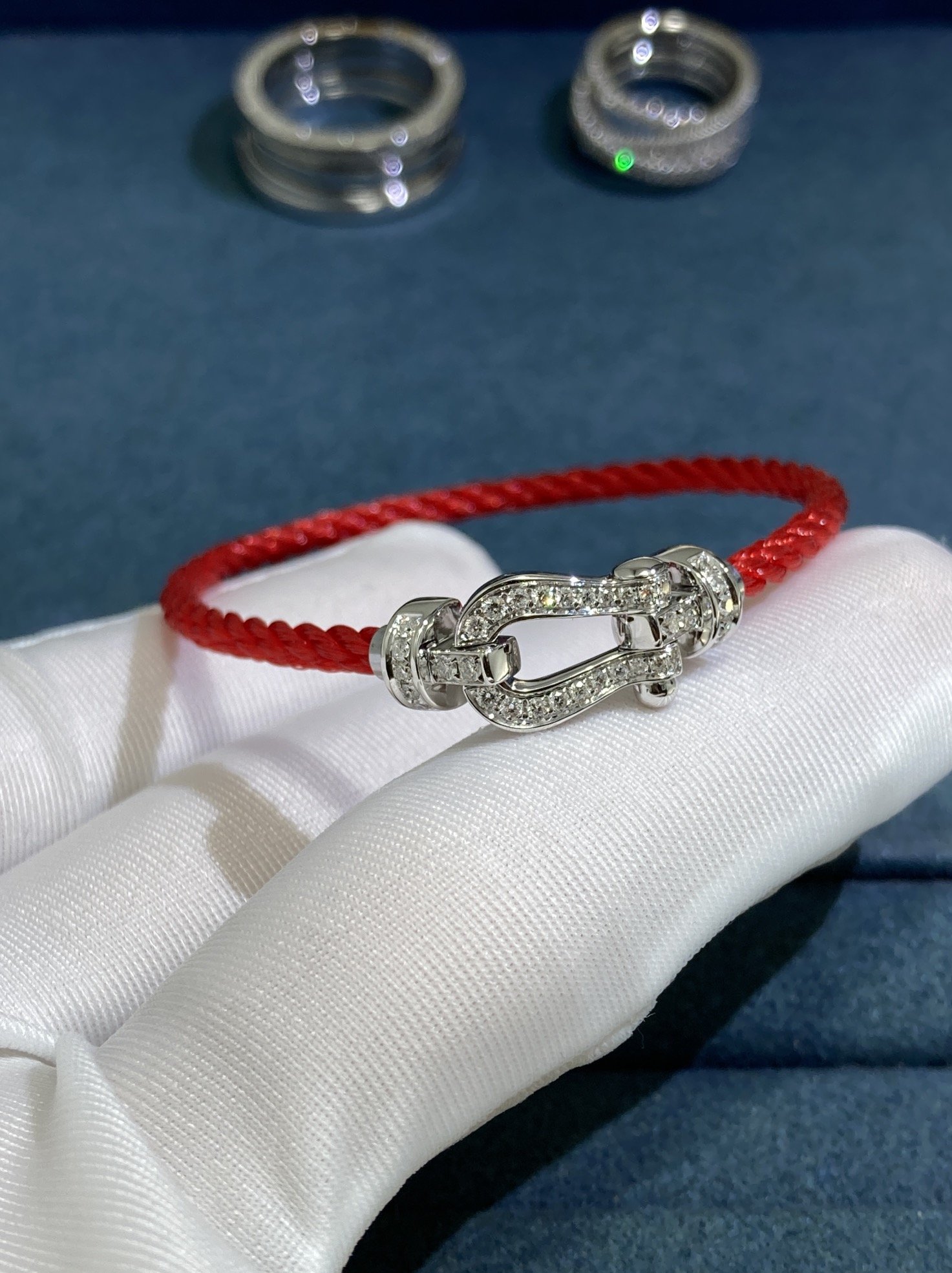 Medium Horseshoe Clasp Full Diamond Bracelet, White Gold