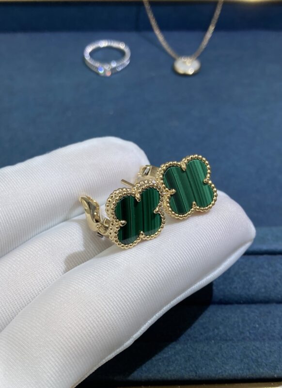 VCA Medium Malachite Clover Earpads, Yellow Gold