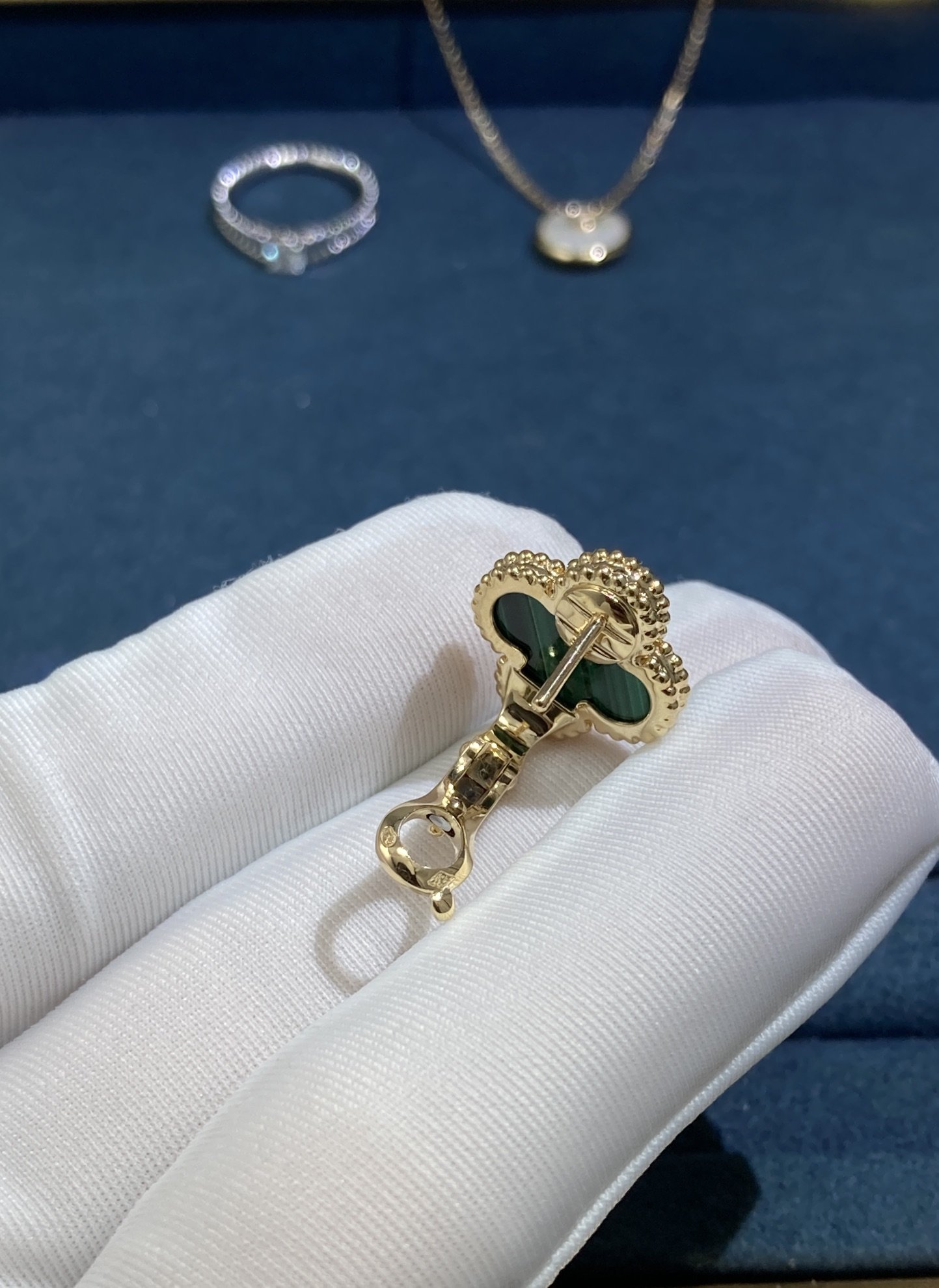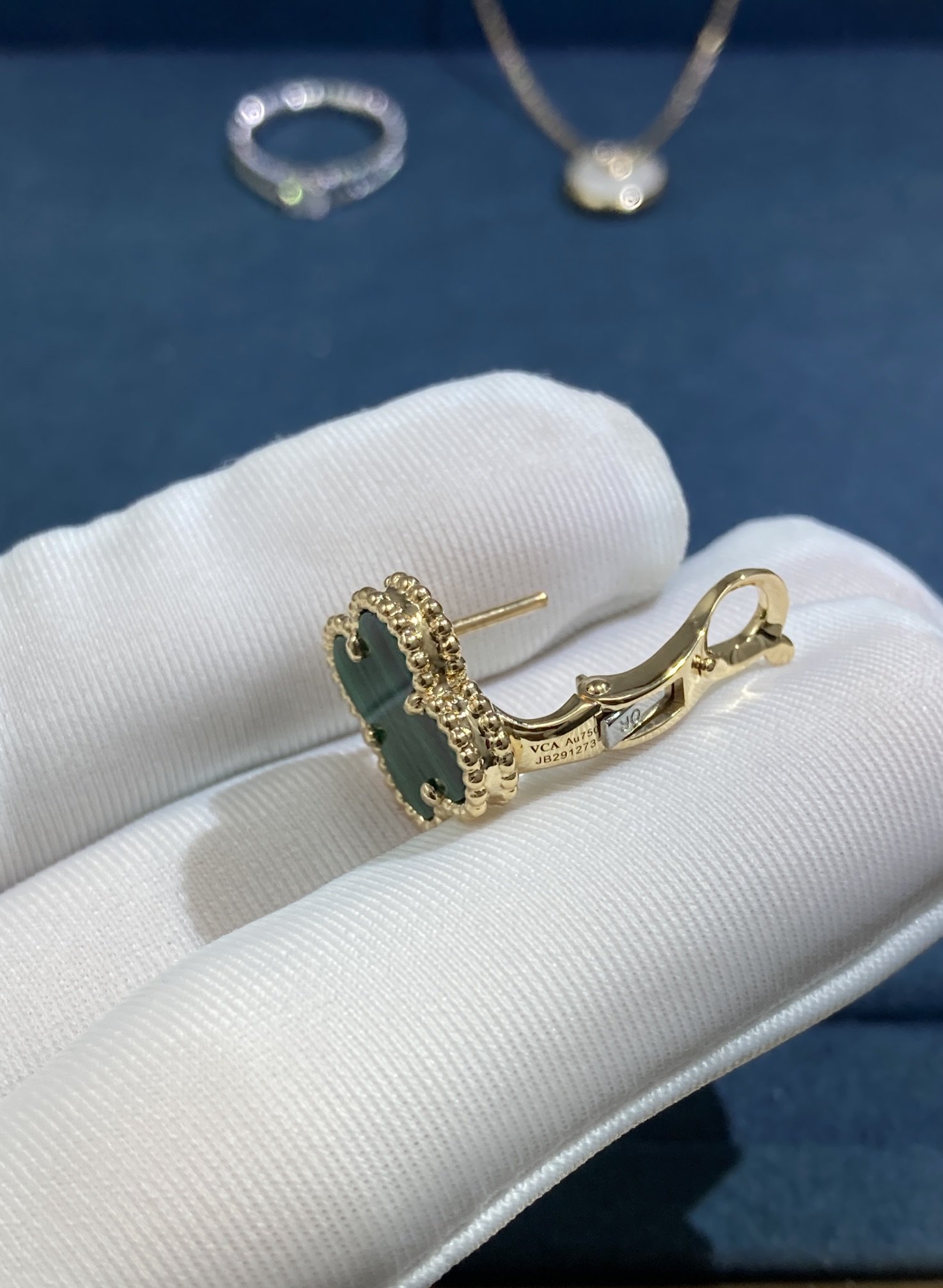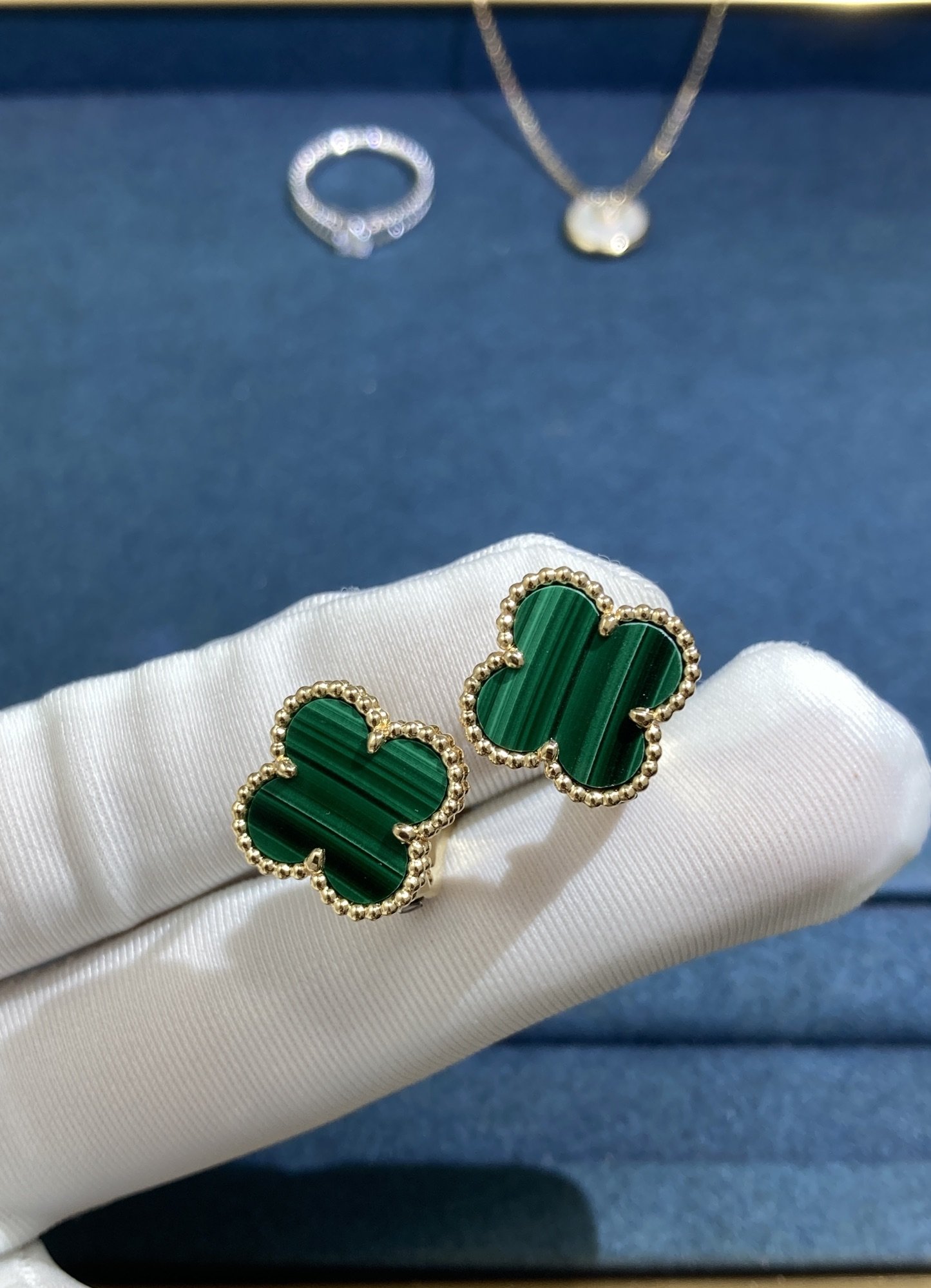 VCA Medium Malachite Clover Earpads, Yellow Gold