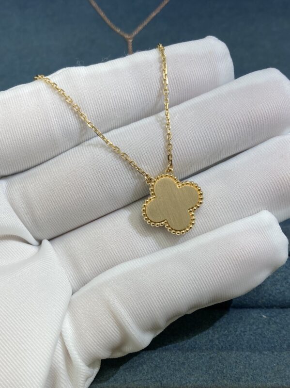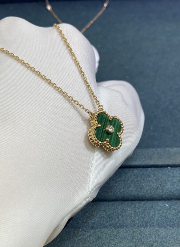 VCA Medium One Diamond Malachite Clover Necklace, Yellow Gold |