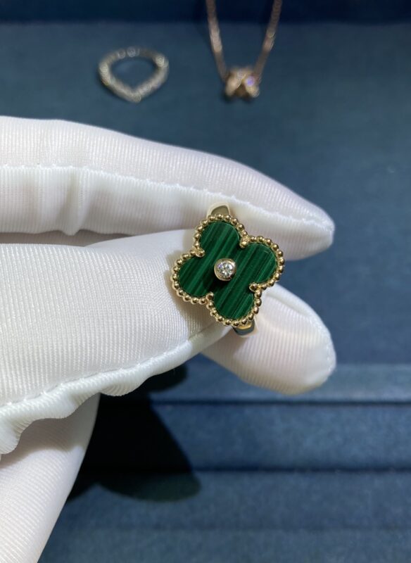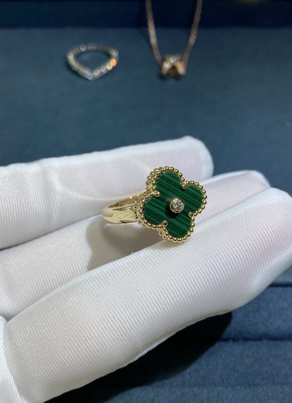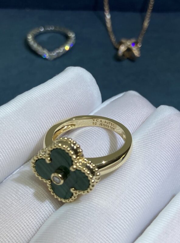 Medium One Diamond Malachite Clover Ring, Yellow Gold