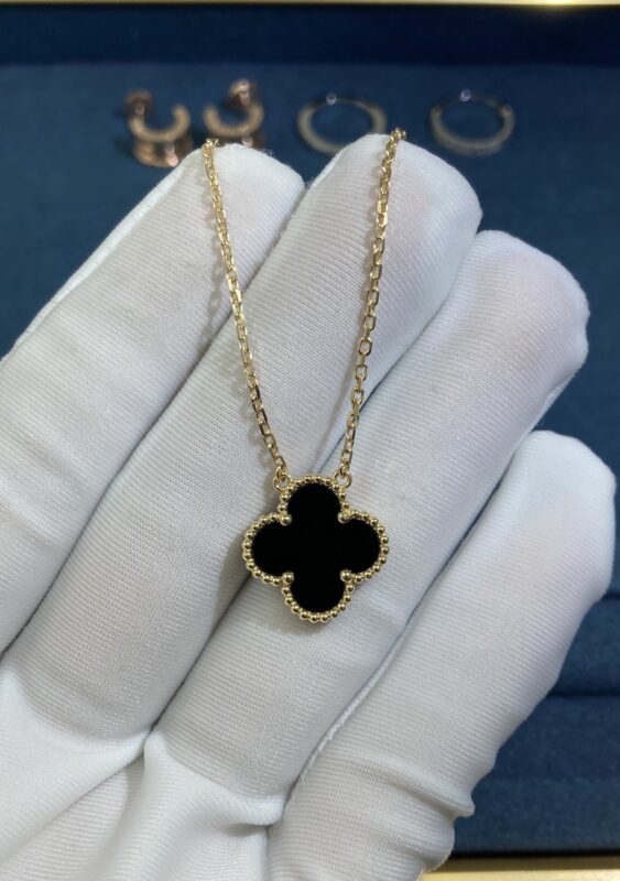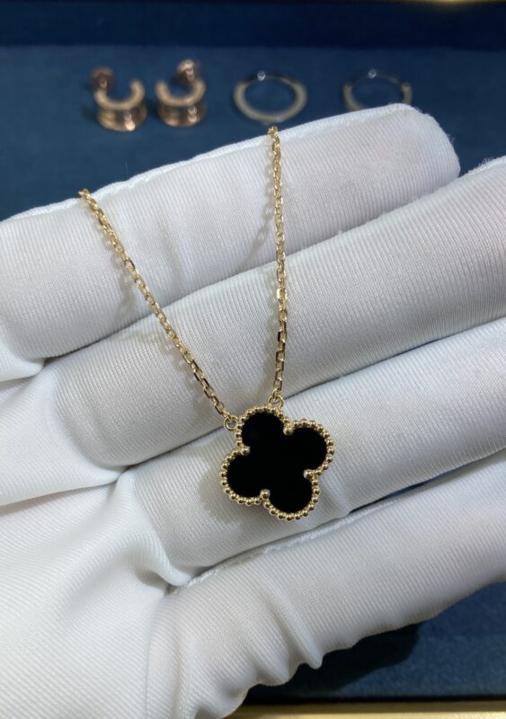 Medium Onyx Clover Necklace, Yellow Gold