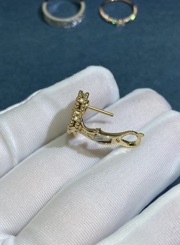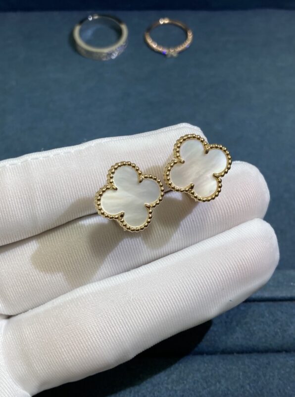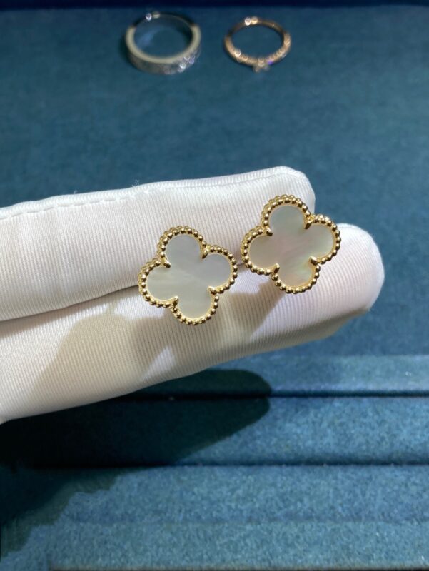 Van Cleef&Arpel Medium White Shell Clover Ear Patches, Gold